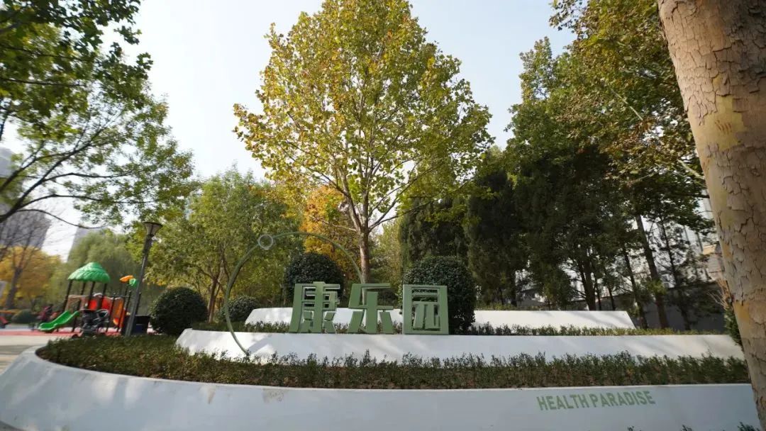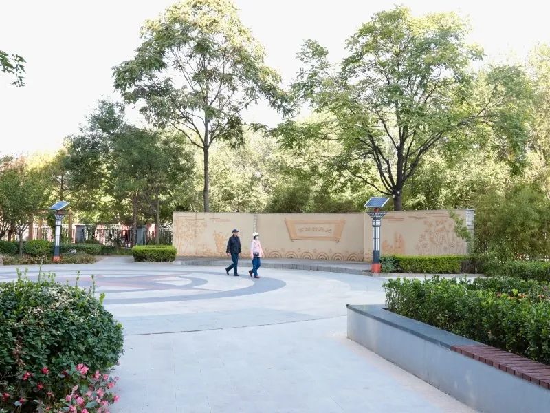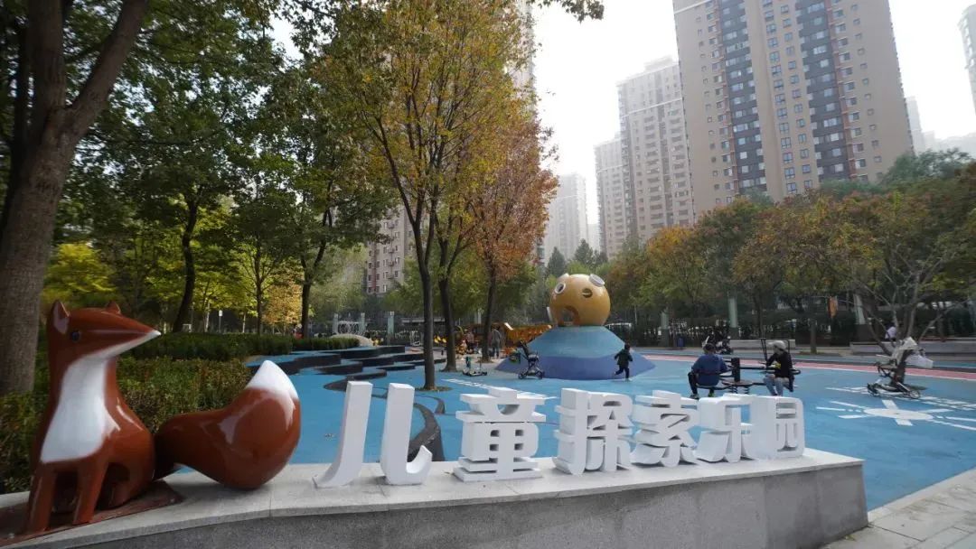如今,园中银杏、碧桃、西府海棠等植物错落有致、色彩缤纷,市民散步其间悠然自在。穿过公园小广场,就能看到新改造的儿童游乐园,游乐园的设计以橙色、蓝色为主色调,清新自然、童趣十足。