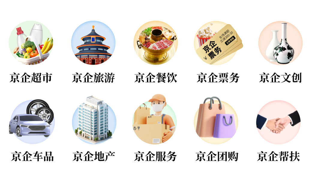 “京企直卖”线上平台涵盖京企超市、京企旅游、京企餐饮、京企票务、京企文创、京企车品、京企地产、京企服务、京企团购、京企帮扶等十大板块。从田间到餐桌,从文创到文旅,从汽车到房子,从商品到服务,平台可为市民消费者提供省时、省力、省心的一站式购物体验。