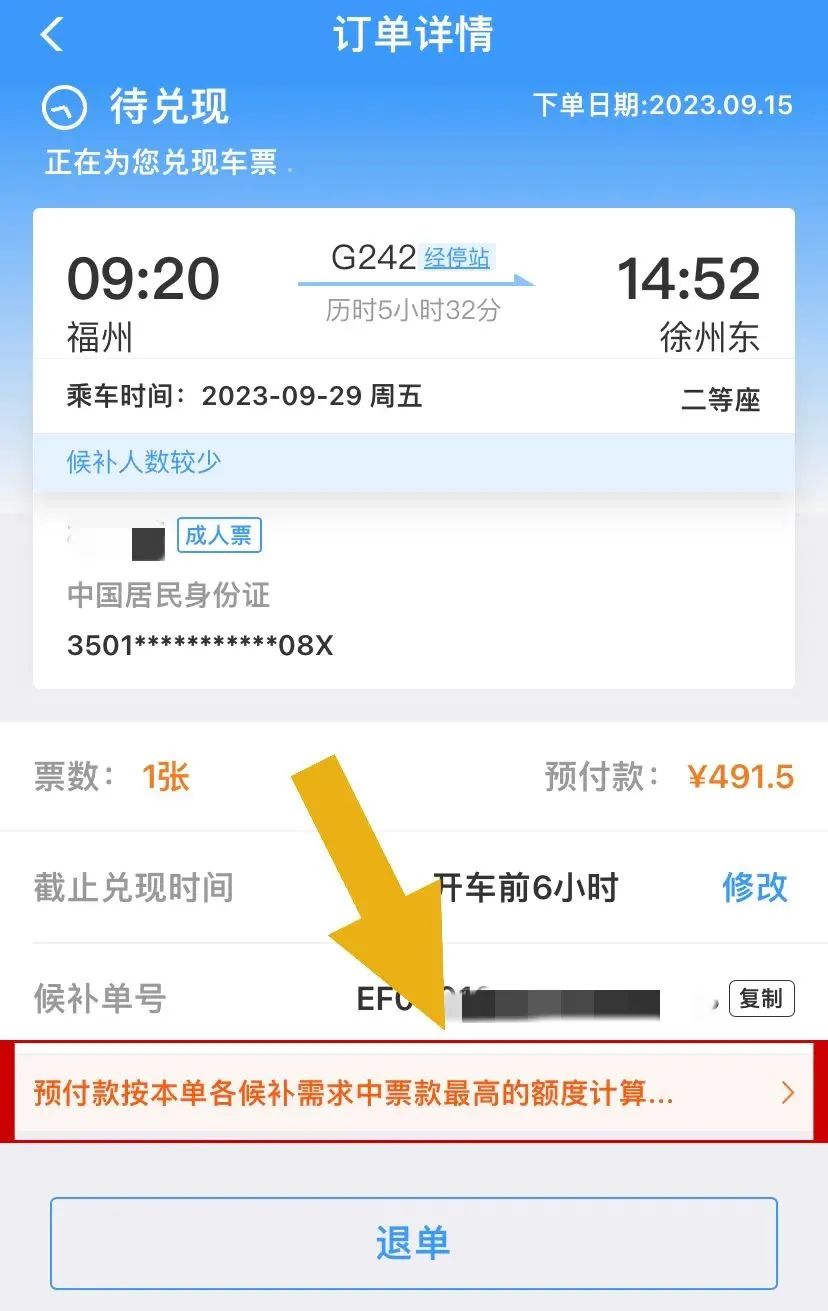 ●待兑现的候补订单可以主动退单,退单后将原额退款。