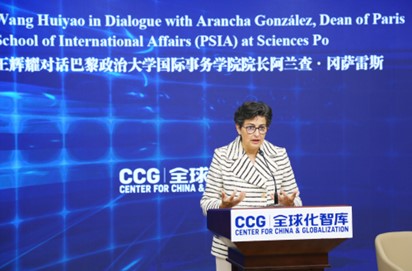 西班牙前外长、巴黎政治大学国际事务学院院长阿兰查·冈萨雷斯11月3日在全球化智库(CCG)北京总部与CCG理事长王辉耀围绕全球贸易走向、世界贸易组织的现状与未来、中欧关系现状与挑战、妇女领导力等多个话题展开对话。