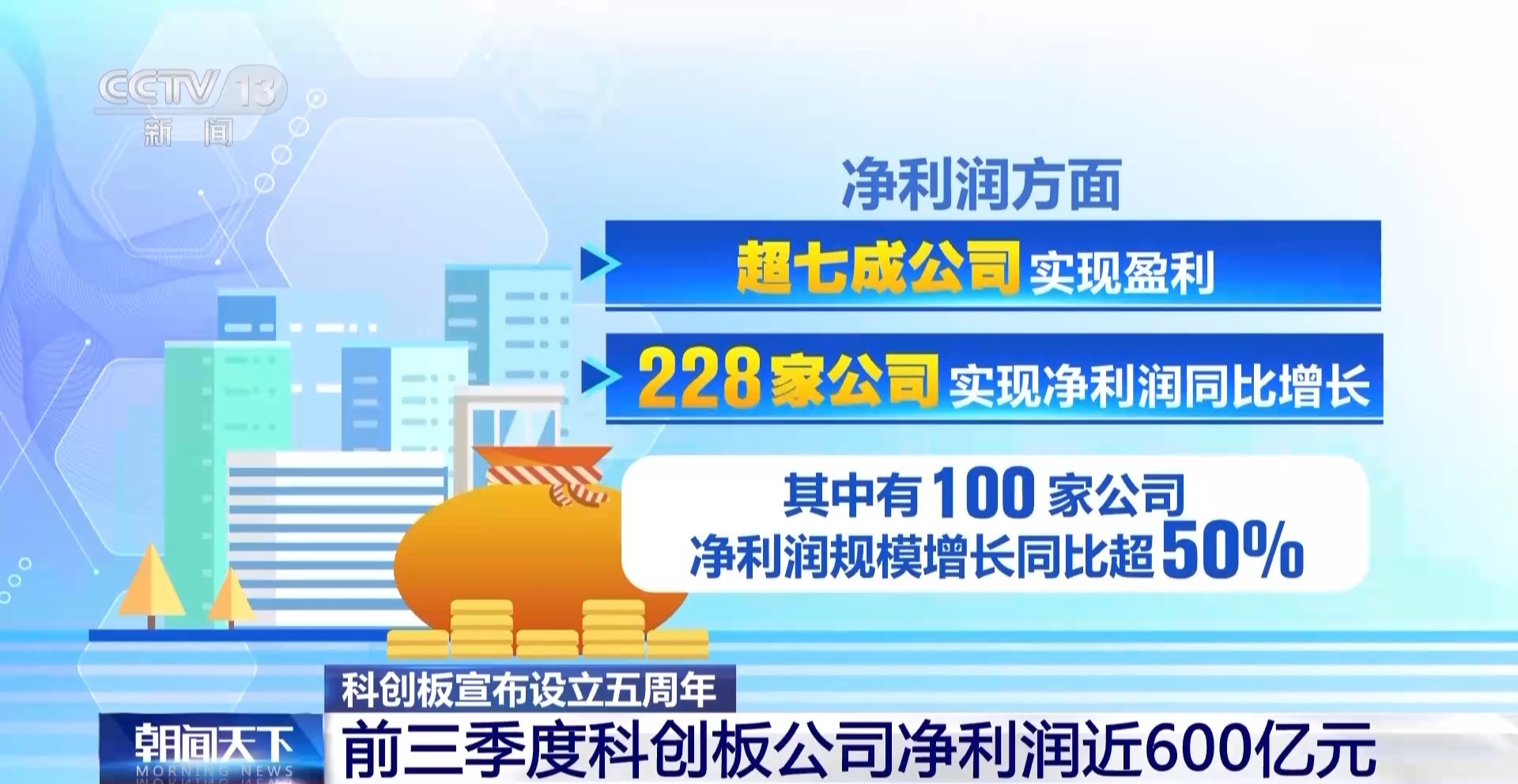 今天(11月5日),正值科创板宣布设立五周年之际,上交所发布科创板公司今年前三季度业绩情况,数据显示,今年前三季度,科创板净利润近600亿元。
