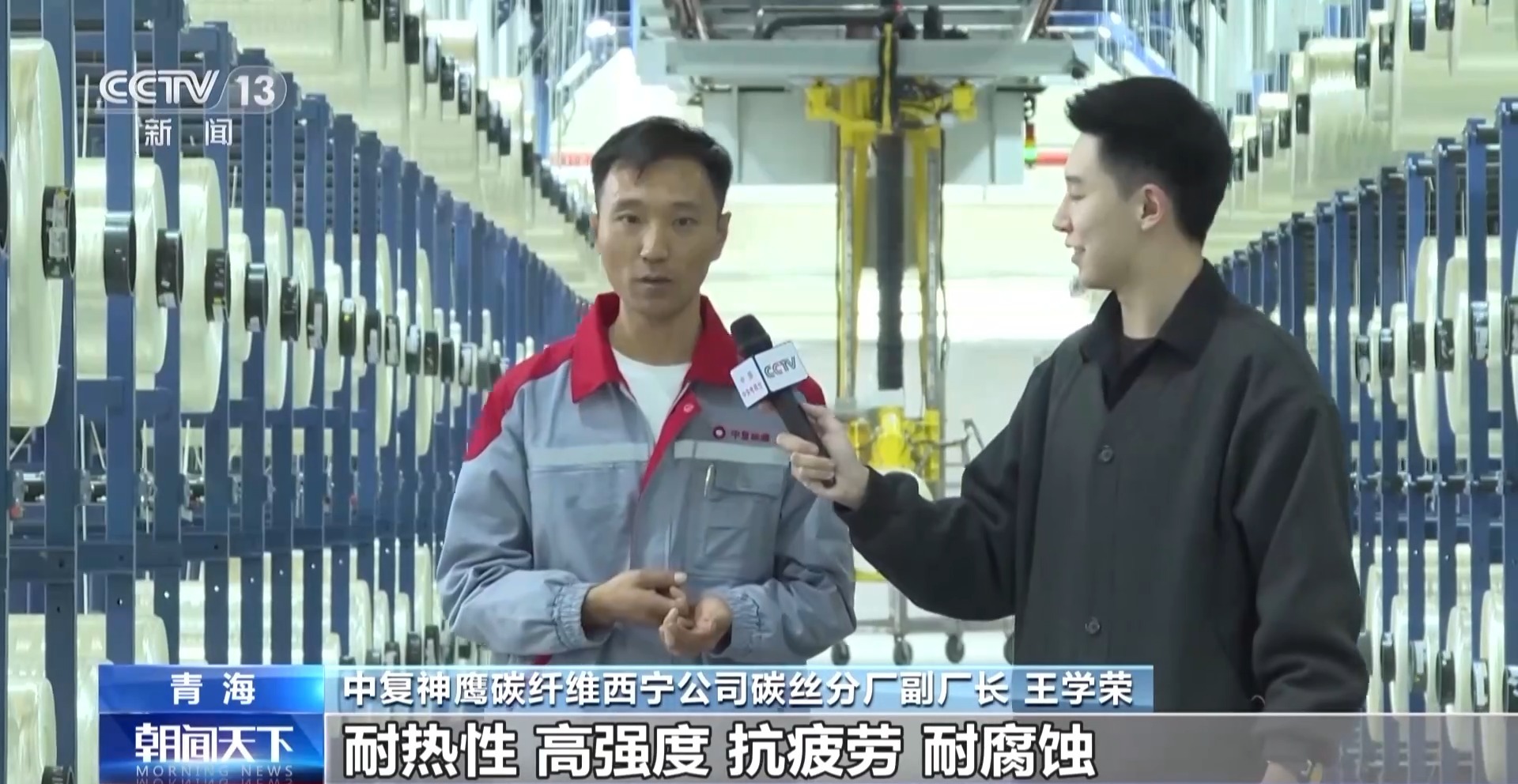 中复神鹰碳纤维西宁公司碳丝分厂副厂长 王学荣:耐热性、高强度,抗疲劳,耐腐蚀这些性能的都特别优异,它已经在很多领域代替了一些金属。
