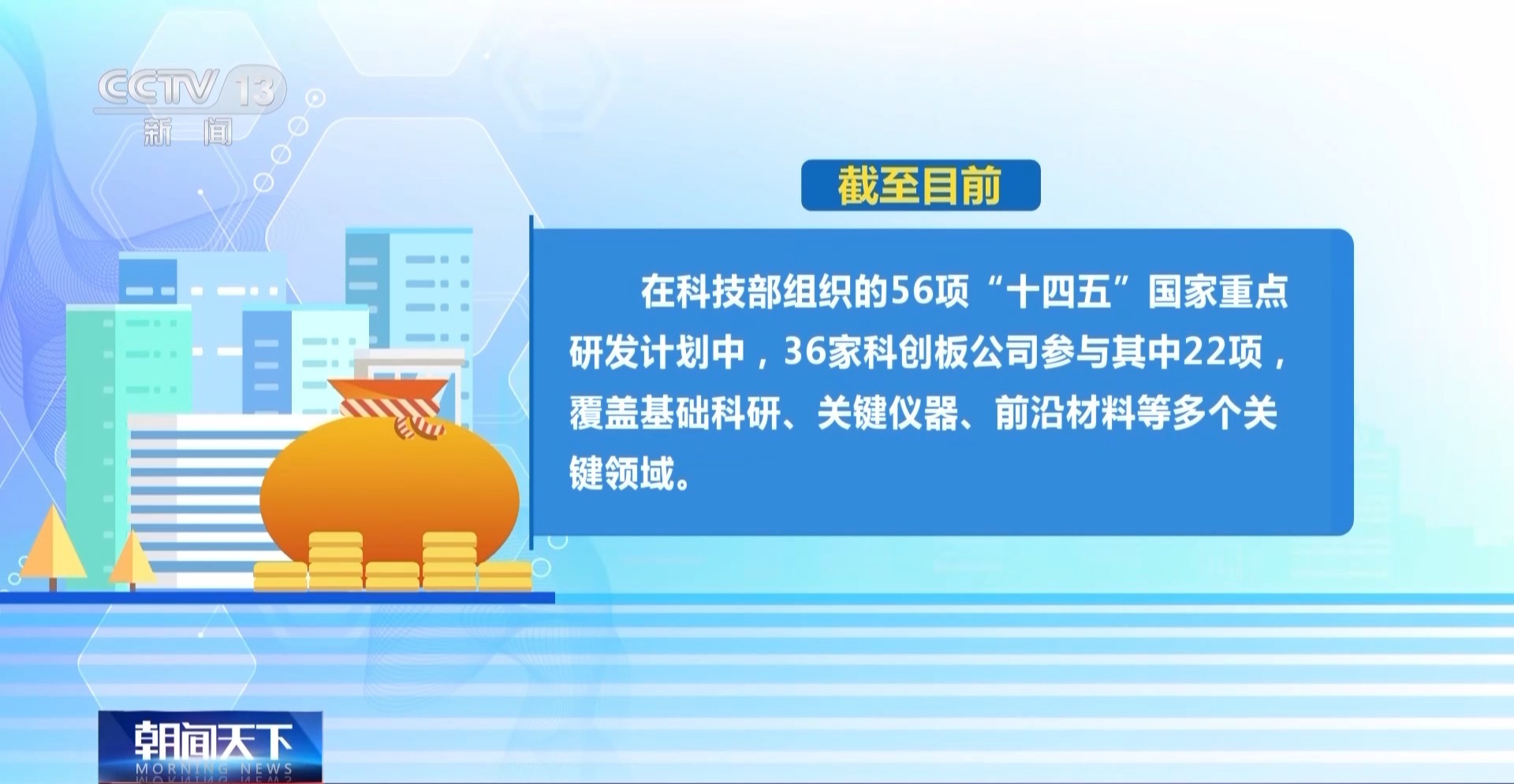 截至目前,在科技部组织的56项“十四五”国家重点研发计划中,36家科创板公司参与了其中22项,覆盖了基础科研、关键仪器、前沿材料等多个关键领域。