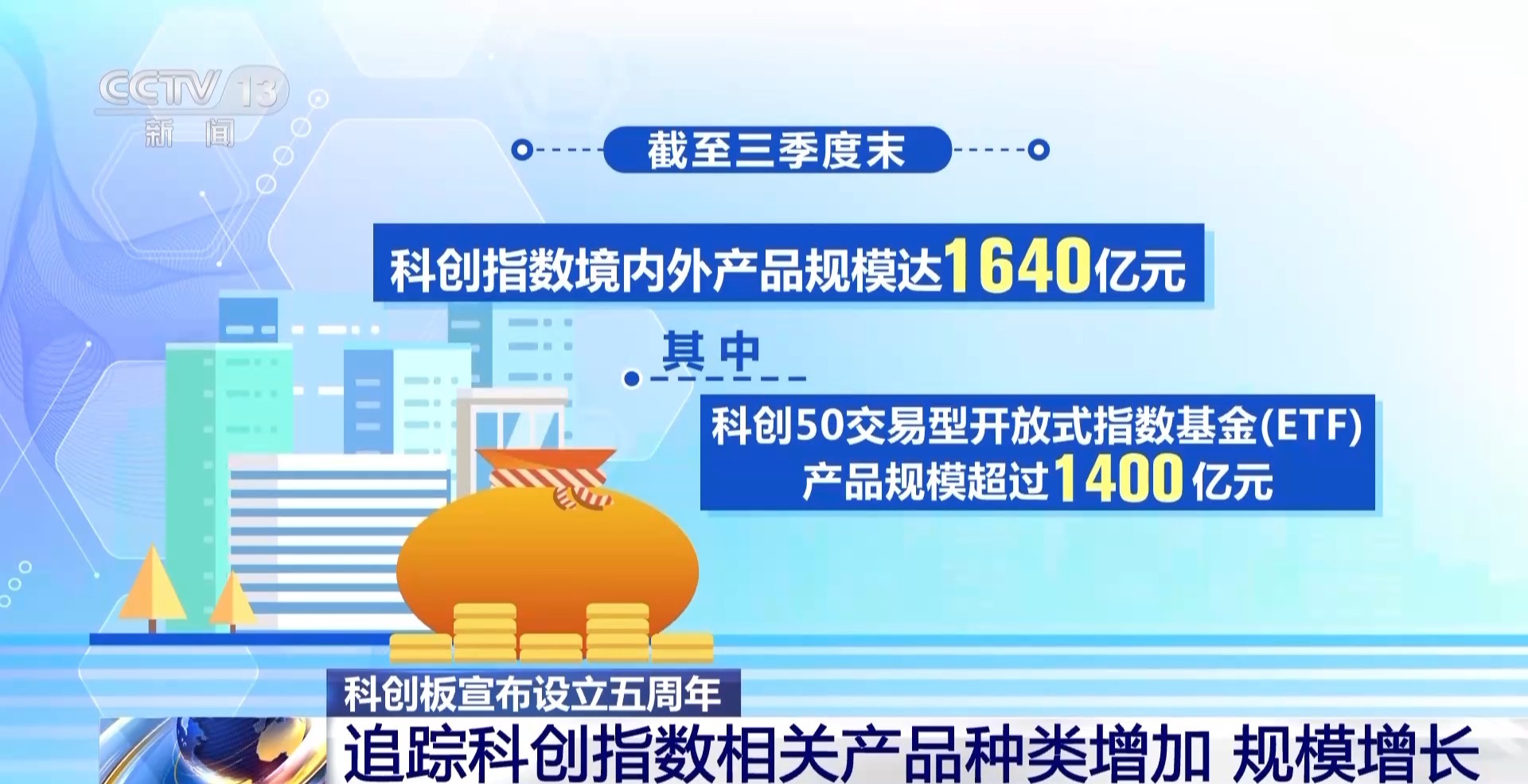 数据显示,截至三季度末,科创指数境内外产品规模达1640亿元,其中科创50交易型开放式指数基金(ETF)产品规模超过1400亿元,稳居境内第二大宽基指数产品。