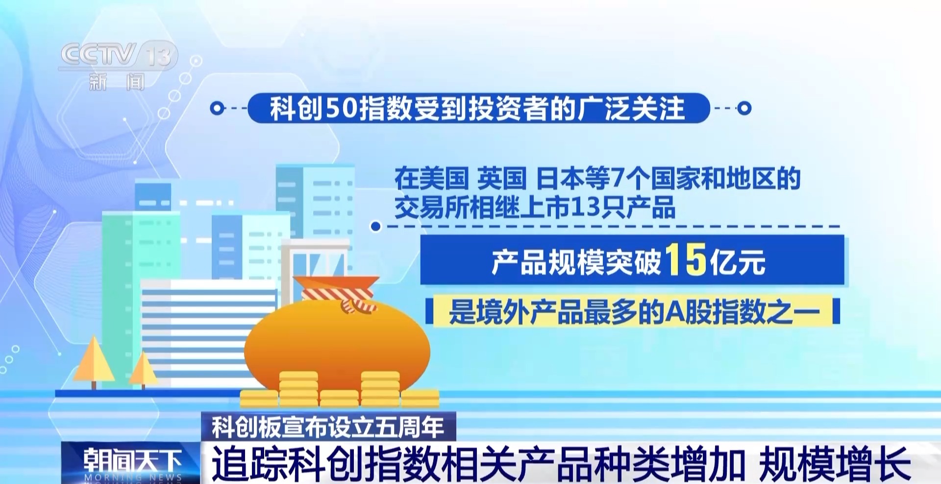与此同时,科创50指数受到投资者的广泛关注,在美国、英国、日本等7个国家和地区的交易所相继上市13只产品,产品规模突破15亿元,是境外产品最多的A股指数之一。