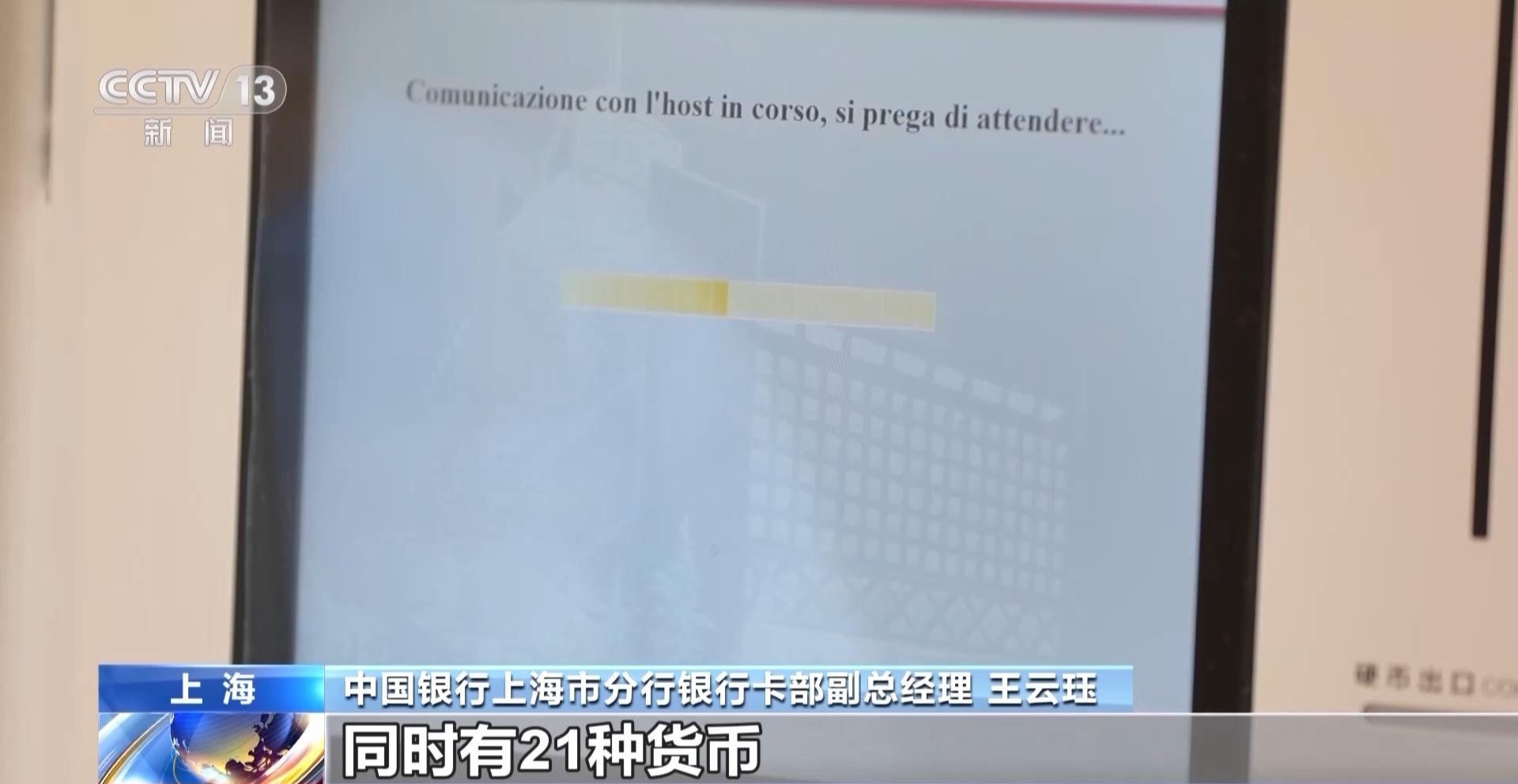 中国银行上海市分行银行卡部副总经理 王云珏:目前我们在进博馆内还另外铺设了有20余台的自助外币兑换机,兑换机里含有8种语言,同时有21种货币来为外籍人士实现现钞兑换,来优化他们的服务体验。