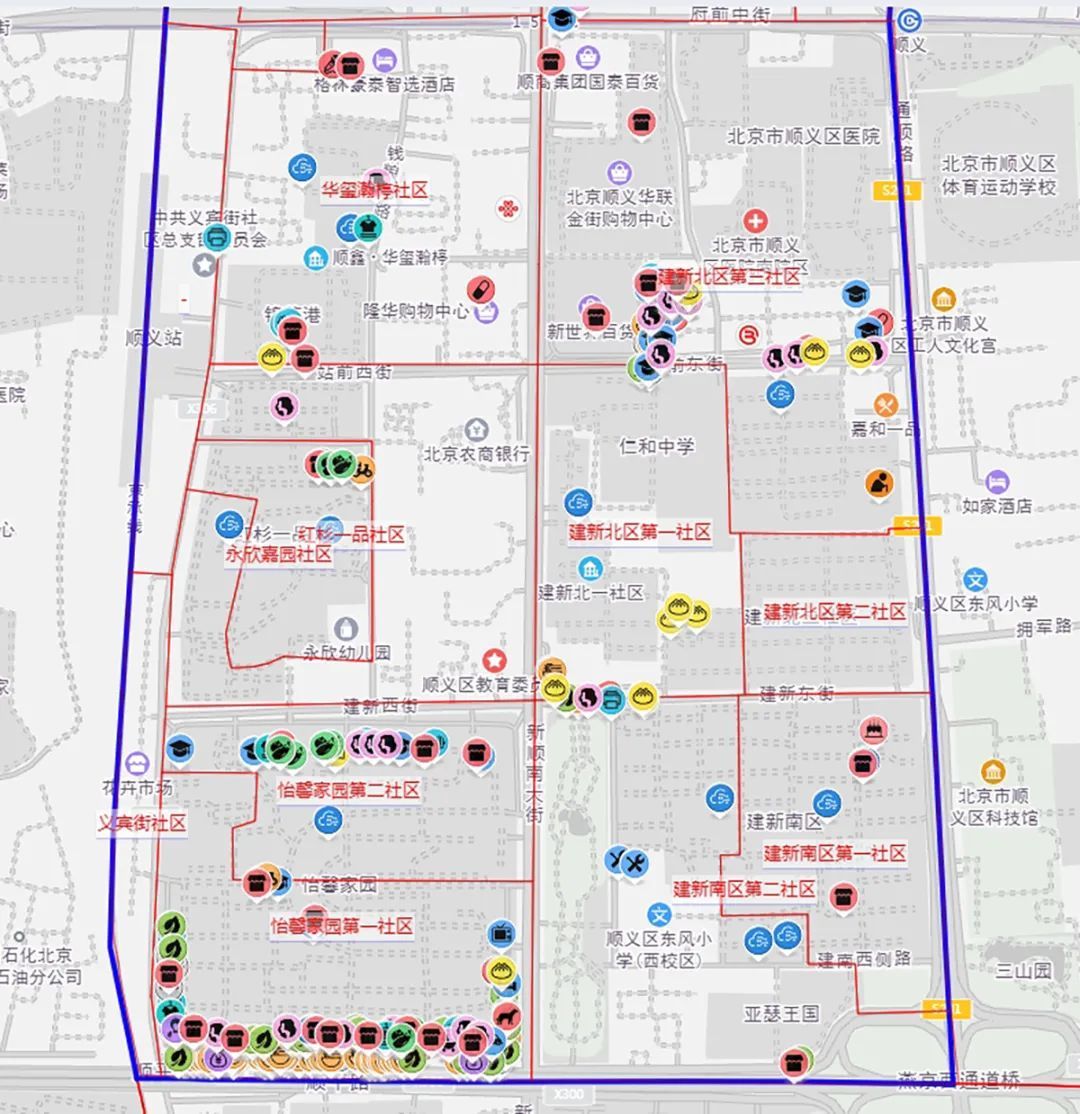胜利街道建新一怡馨社区便民生活圈包括建新北区第一社区、建新南区第一社区、怡馨家园第一社区等11个社区,面积136万平方米,覆盖2.8万余人。生活圈主要以新世界百货顺义店、隆华购物中心、锦荟港等“一站式”商业便民服务中心为业态集中区域,生活圈内基本保障类业态与品质提升类业态齐全,可以满足居民日常生活所需。目前,这个便民生活圈已完成市级评估。