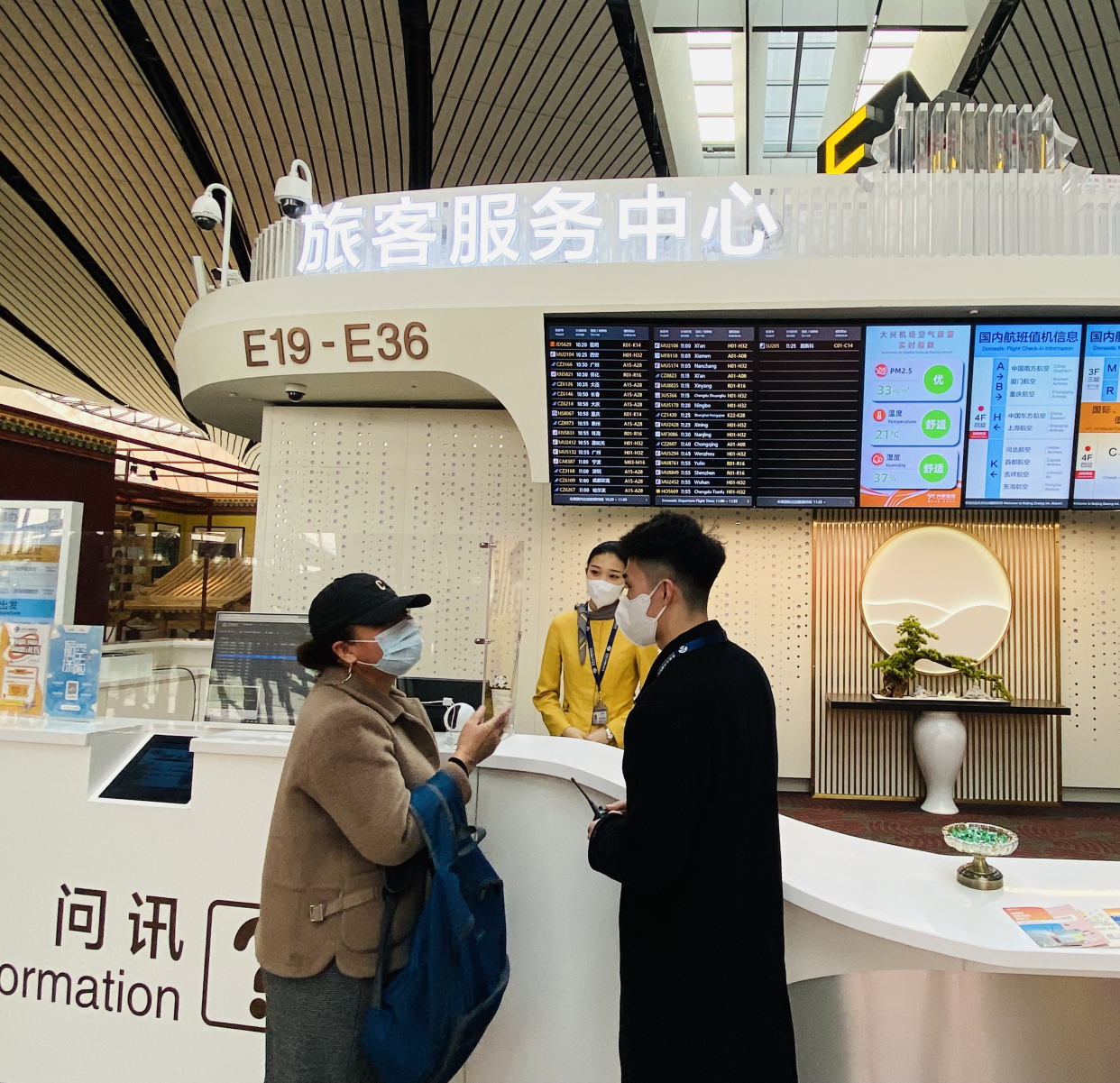 “劳烦问下,有没有会说蒙语的同事?”“有!员工现在在岗位上,需要的话可以与您电话联系。”在大兴机场“兴心相印全流程联动”微信群中,经常会有这样的求助信息,大兴机场各单位负责人将会根据旅客需求调配人员,帮助旅客解决问题。