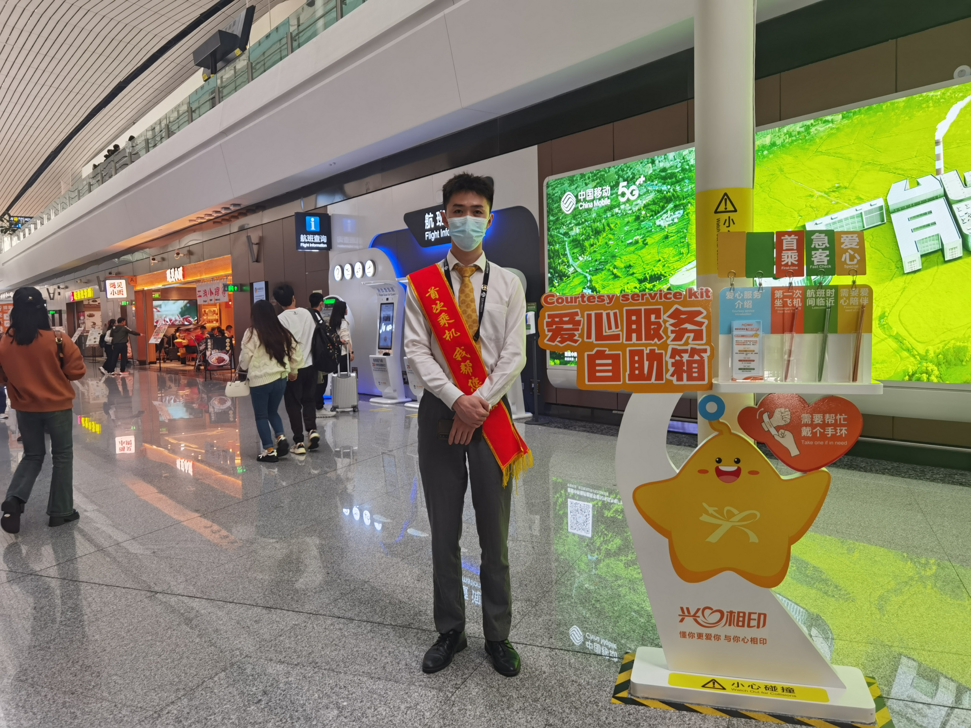 机场大使特日棍是一名蒙古族小伙,也是大兴机场“乡音伴行”队伍中的一员。去年春节前,一名来京探亲的内蒙古老人要独自返乡,由于不会讲普通话,老人在值机时有些不知所措。特日棍得知消息后,安排好手头工作,便来到老人身边,用蒙语交流,让老人一下子放了心。随后,特日棍不但全程陪同老人值机,还用亲切的家乡话与老人聊天,消除老人紧张的情绪,让老人非常感动,再三表示感谢,并表示下次来京还要找他帮忙。