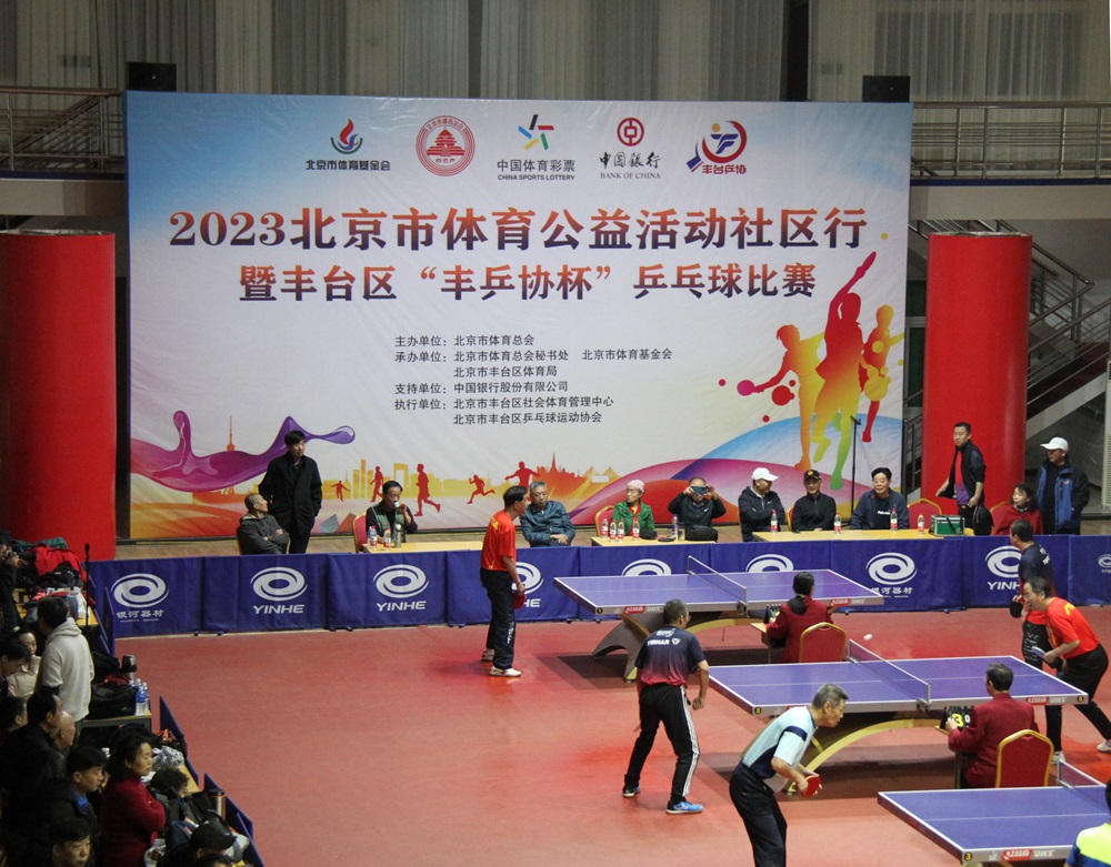日前,由北京市体育总会主办,北京市体育总会秘书处、北京市体育基金会和丰台区体育局共同承办,中国银行股份有限公司支持的2023北京市体育公益活动社区行暨丰台区“丰乒协杯”乒乓球比赛在丰台区金球国际体育会议中心举行。