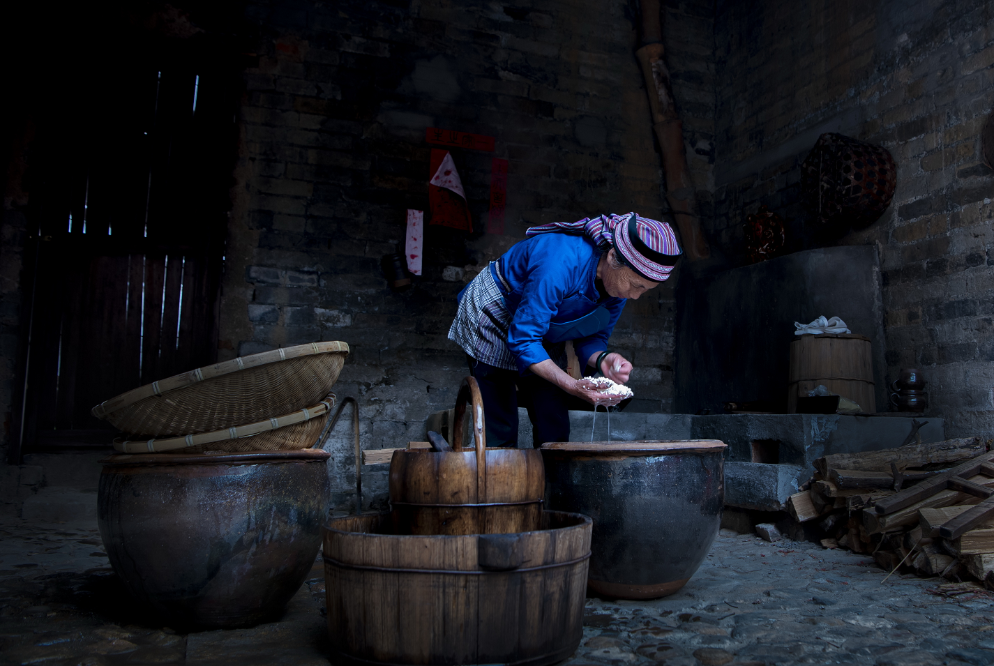 在江西赣州龙南市,每到立冬时节,勤劳的客家妇女精选上好的糯米,用清甜的井水蒸制客家米酒。此酒色泽金黄,口感甘醇,热喝温心暖胃,深受客家人喜爱。(江西省龙南市纪委监委供 林芳 摄)