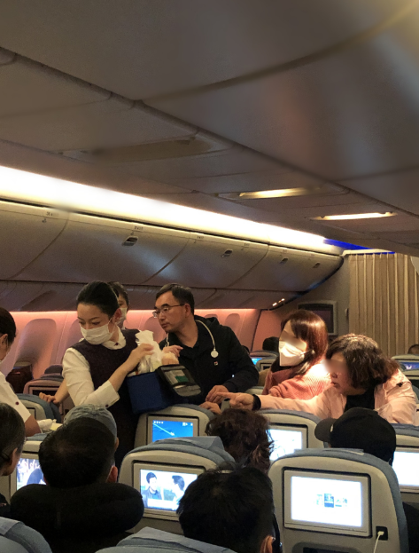 “有乘客昏迷了!呼叫医务人员!呼叫医务人员!”近日,在北京飞往洛杉矶的航班上,机组广播突然向乘客发出医疗紧急呼叫。北京清华长庚医院心血管内科副主任薛亚军恰好在这架航班上,听到广播后,他立刻赶往患者座位。