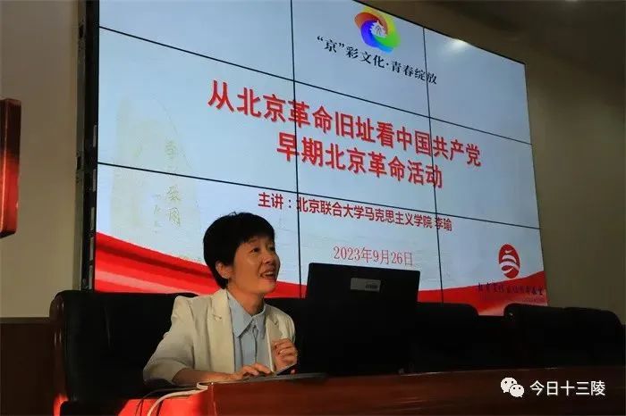 现场,来自北京联合大学马克思主义学院的老师李瑜和学生李燕伶先后走上讲台,他们分别以“以青春之我 担时代之责”和“从北京革命旧址看中国共产党早期北京革命活动”为题,带领长陵学校的师生一同观看《四渡赤水》动画视频,聆听红军长征故事,重温北京31个红色打卡地,讲述党的光荣历史和优良传统,引导青少年从红色感人事迹中激发信仰、汲取力量,努力成长为建设祖国的有用之才、栋梁之材。