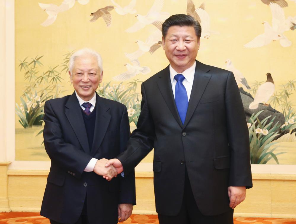 2016年1月29日,中共中央举行党外人士迎春座谈会。这是习近平同志与周铁农同志握手。新华社记者 姚大伟 摄