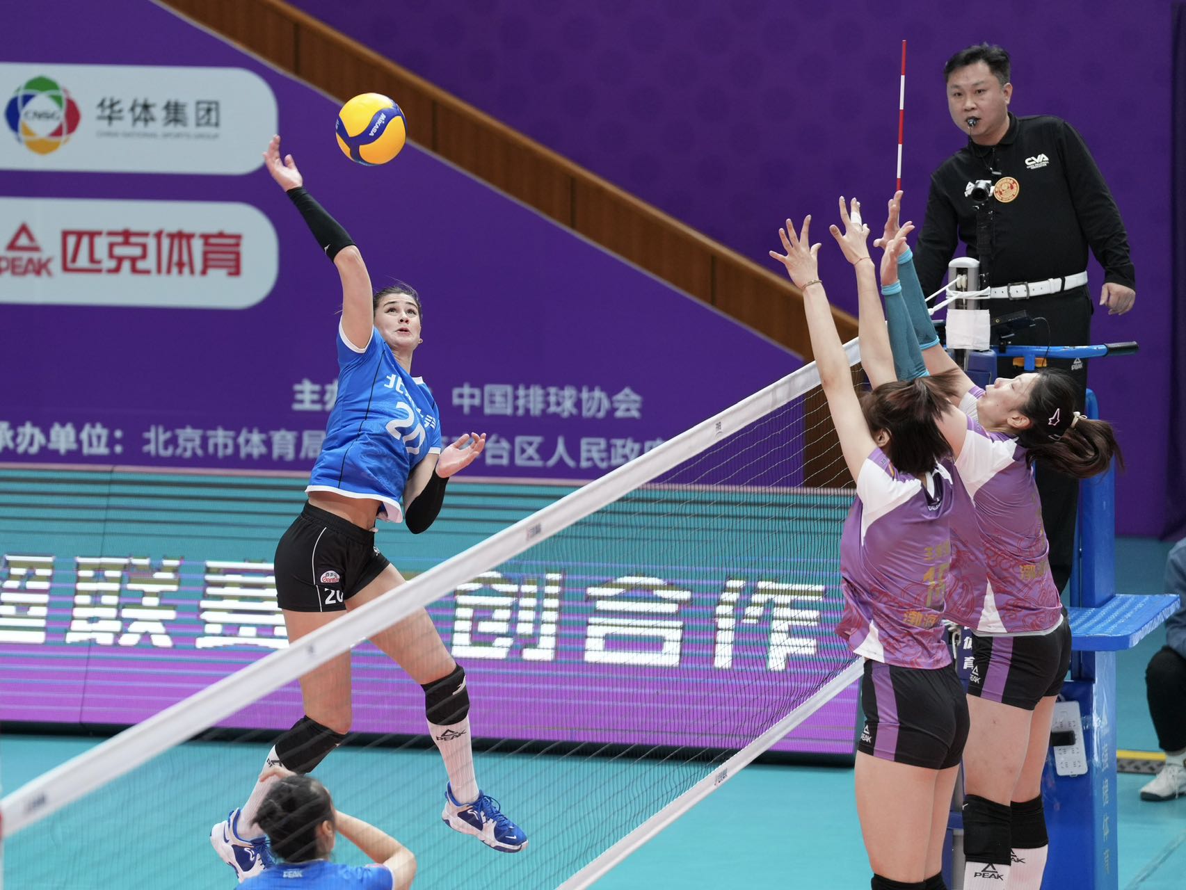 11月11日,2023至2024赛季中国女排超级联赛开始第三轮较量,北京北汽女排坐镇主场光彩体育馆迎战天津女排。最终,北汽女排0比3负于对手,连胜脚步被终止。三局比分为15比25、17比25和22比25。