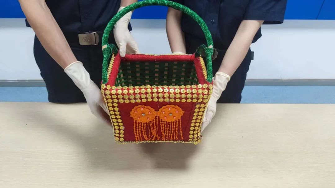 深圳邮局海关关员在对转运货物开展监管时发现,一票申报为“木槿、鳄鱼皮”的包裹机检图像可疑,随即对其开箱查验。经查验发现,该票包裹内有一个装有干货食品的木质编织篮,编织篮顶部及底部框架暗格内藏匿有白色晶体状粉末一批。经毒品快速检测试剂检测,该批白色晶体状粉末呈冰毒阳性反应,毛重1301.1克。目前,该案已移交海关后续处置部门处理。
