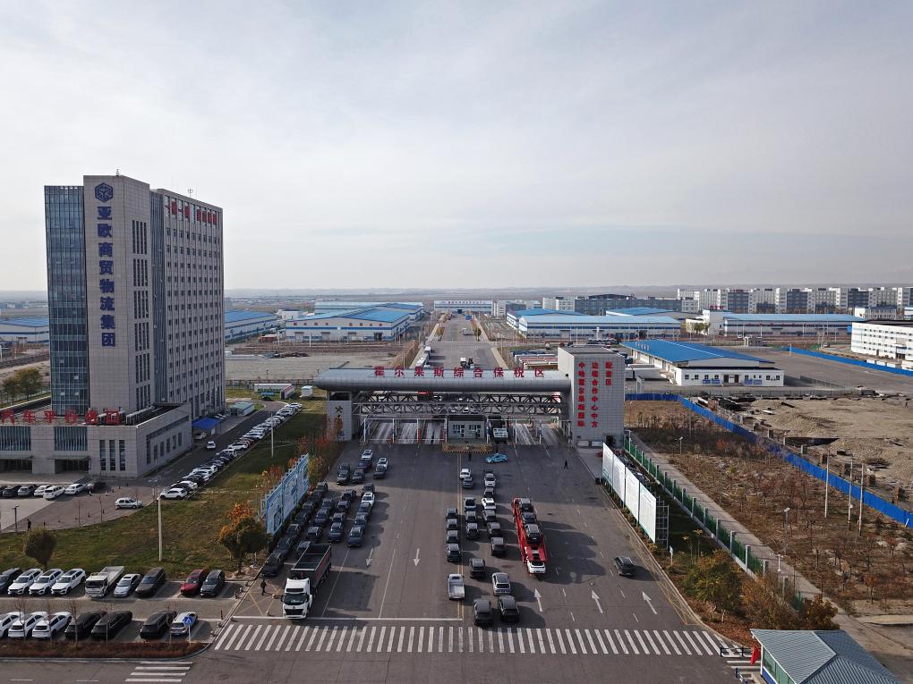 11月8日,霍尔果斯综合保税区(无人机照片)。新华社记者李鑫 摄