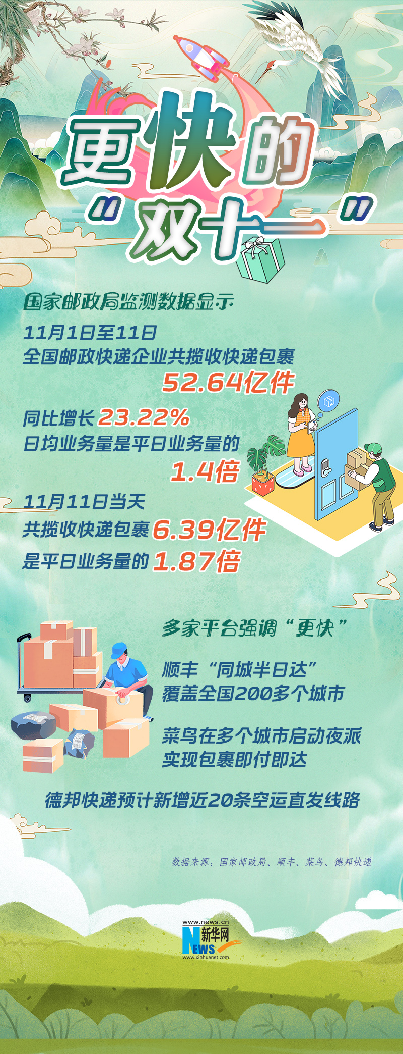 快递量级展现向好趋势。国家邮政局11月12日发布数据,2023年11月1日至11日,全国邮政快递企业共揽收快递包裹52.64亿件,同比增长23.22%,日均业务量是平日业务量的1.4倍。11月11日当天,共揽收快递包裹6.39亿件,是平日业务量的1.87倍,同比增长15.76%。