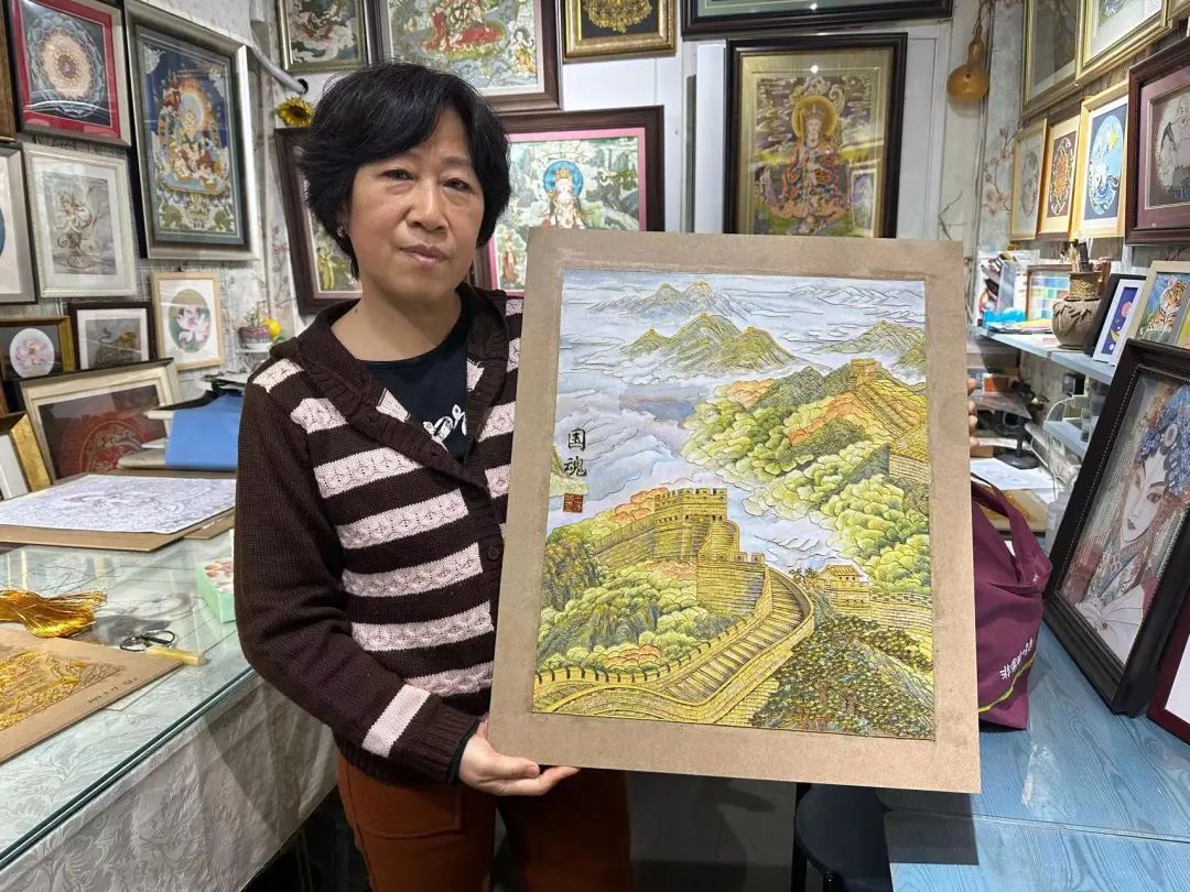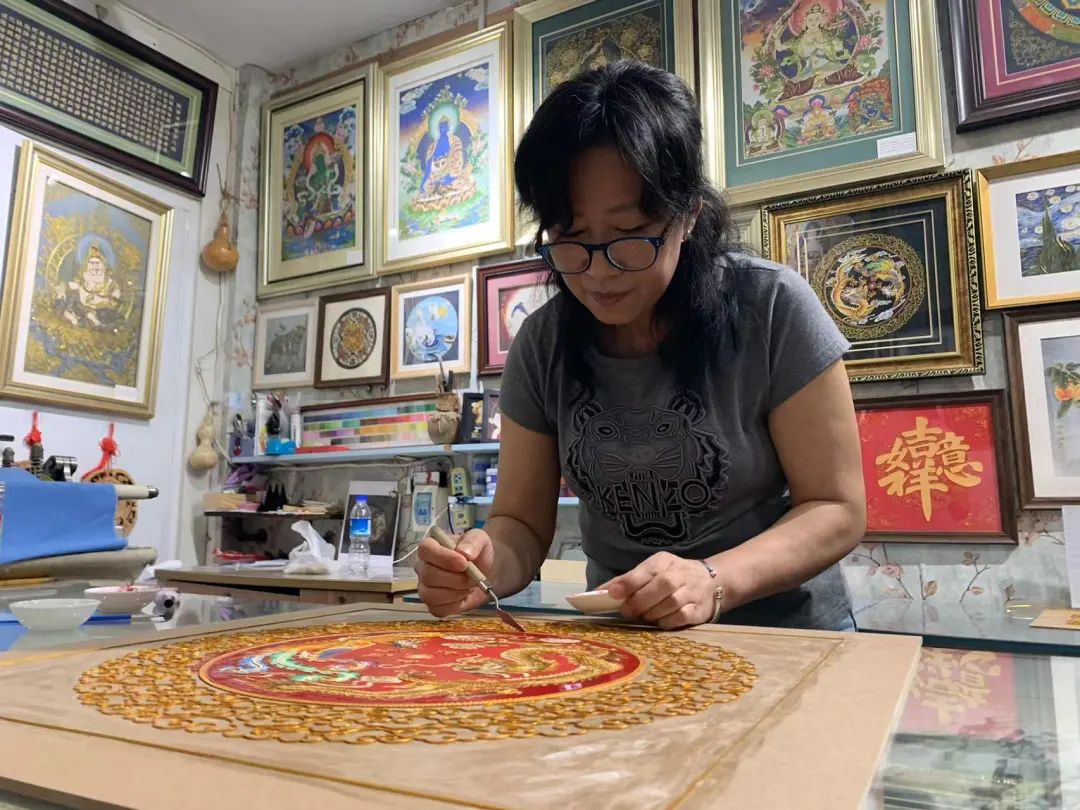 作为掐丝珐琅画传承人,王海风的学生遍布各地,采访之余,她还向我们分享展示外国学生所创作的作品“般若波罗蜜心”。毫无保留的传授掐丝工艺,也让更多国人和外国友人加深对中华传统文化的认识,感受到非遗技艺的独特魅力。