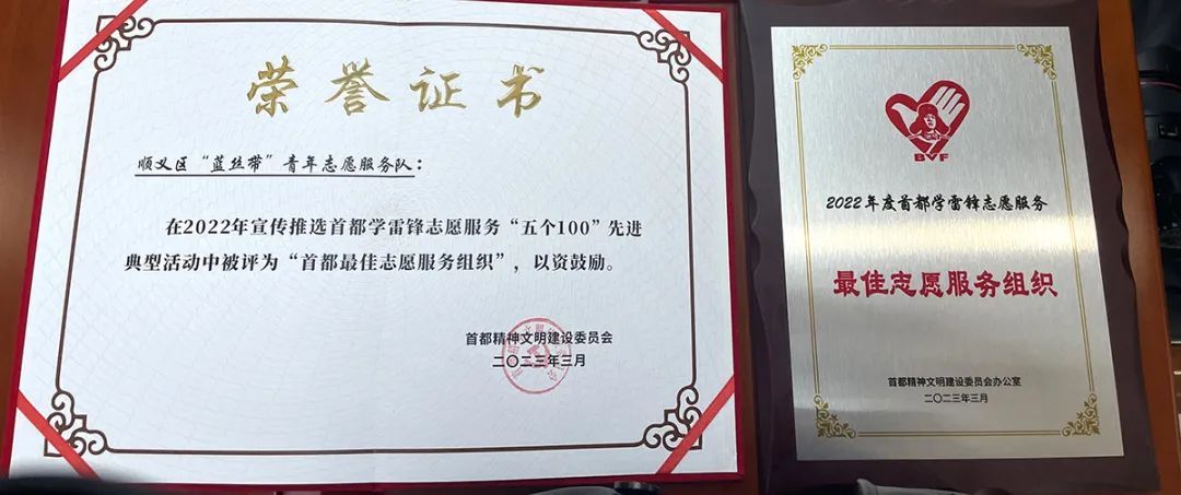 “蓝丝带”青年志愿服务队荣获了“北京市青年突击队”“北京市五四红旗团委”等荣誉称号;26名队员收到锦旗、170名队员收到感谢信、15名队员荣获“突出贡献奖”,营造了浓厚的志愿服务氛围。