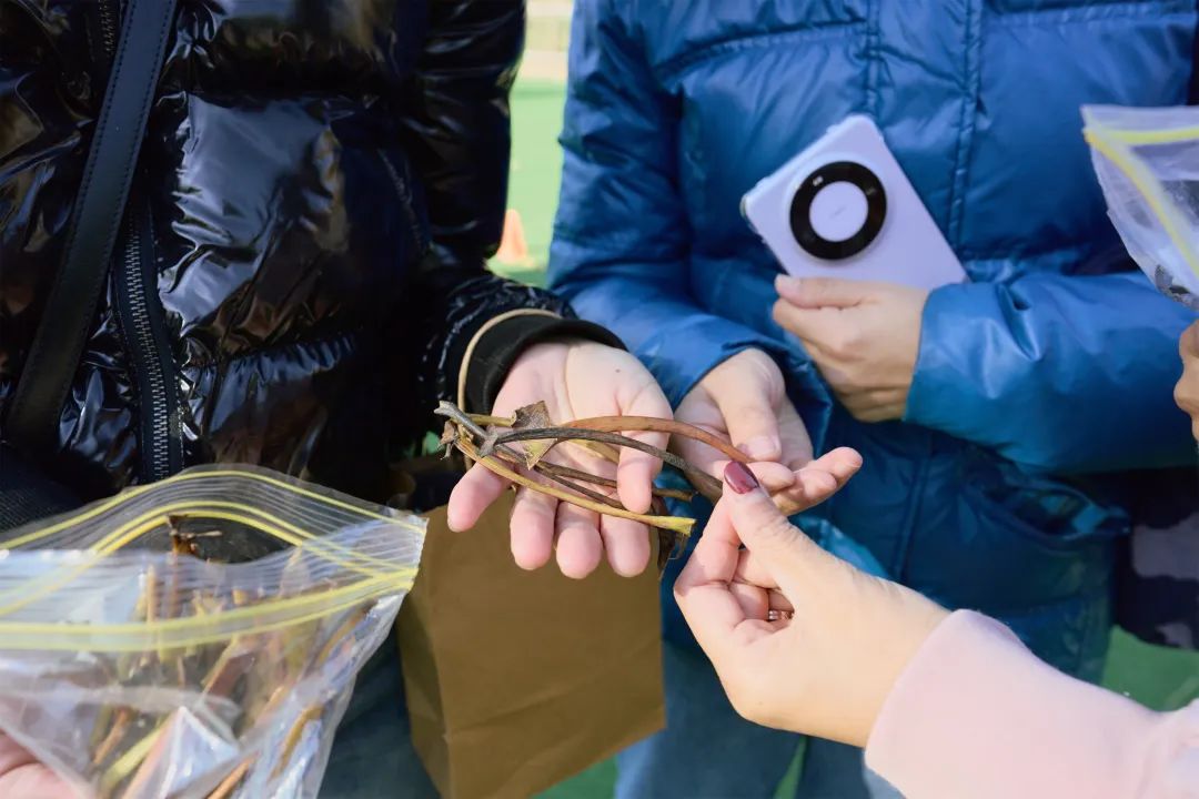 每人手里拿着长长的树叶根
