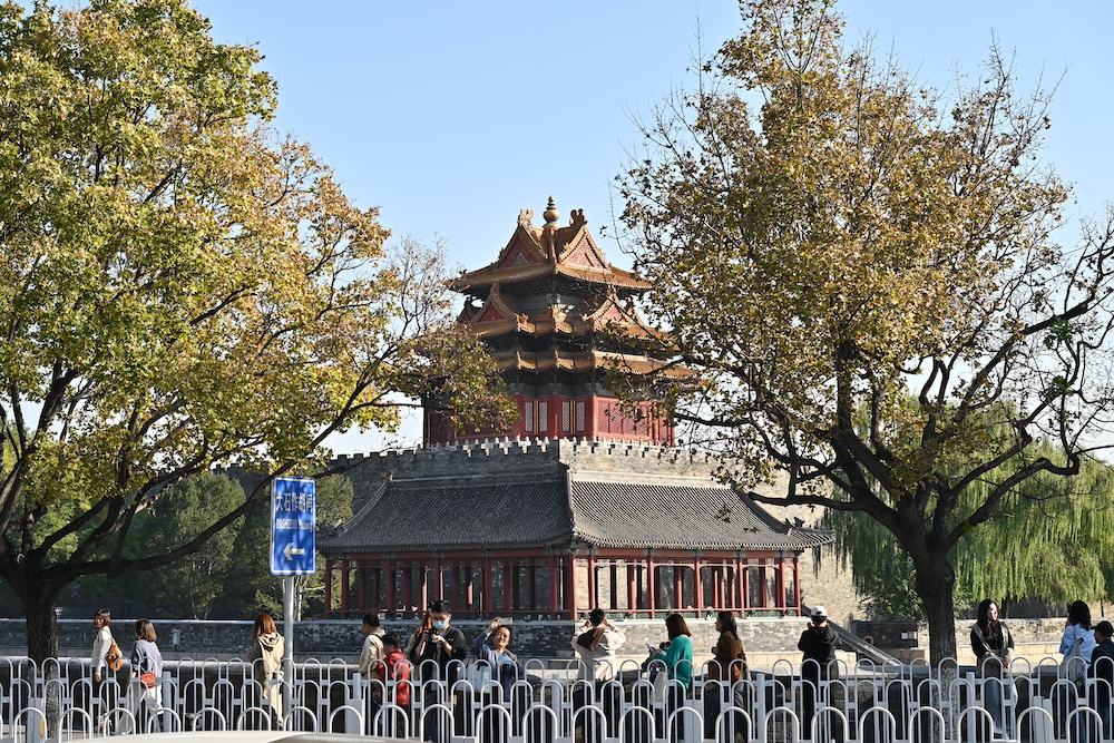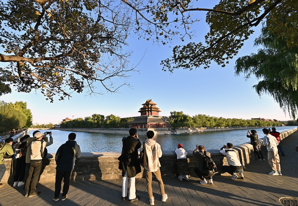游客在故宫角楼拍照(10月20日摄)。新华社记者 李鑫 摄