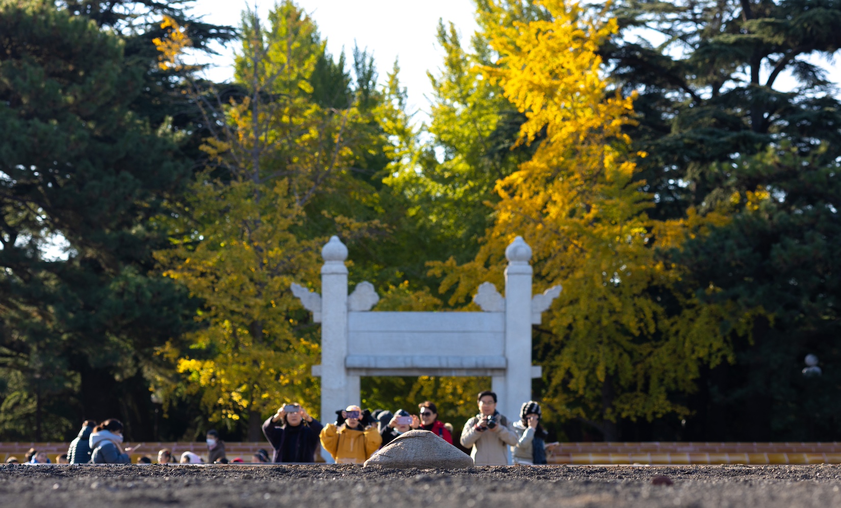 游客在北京中山公园拍摄社稷坛(11月7日摄)。社稷坛是皇帝祭祀土神和谷神的地方,也是皇权王土和国家收成的象征,1928年改名为中山公园。新华社记者 李京 摄
