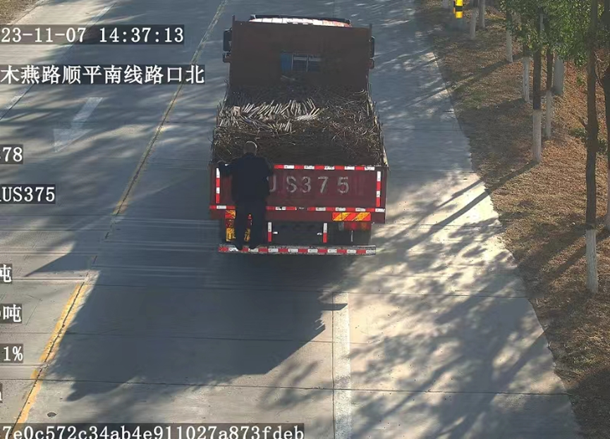 近日,北京市交通运输综合执法总队十支队在开展非现场治超执法监管中,发现一辆货车经过木燕路顺平南线路口北检测设备时,显示其总重24.5吨,超重6.5吨,超载率36.11%,涉嫌违法超限运输。当执法人员仔细查看图片证据时,惊人的一幕上演了,照片上显示,为了逃脱追查,该车后部有一名人员站在后保险杠上,用身体充当障碍物去遮挡号牌,如此危险行为让人不寒而栗!