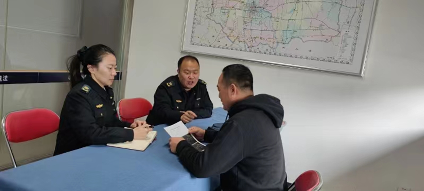 执法人员根据掌握到的信息,立即联系约谈该车所属企业负责人,严厉告知其“掩耳盗铃”行为不仅加大了道路交通安全事故隐患,更是“以身犯险”,拿生命开玩笑。严肃告诫企业,一定要坚持安全至上,严格管理车辆、教育驾驶人员,确保自身和公共安全。该企业负责人认识到问题严重性,表示一定立即整改、加强管理。北京市交通运输综合执法总队十支队执法人员依法对该车超限运输违法行为进行了行政处罚,并将遮挡号牌的违法行为移交至交管部门进行处理。