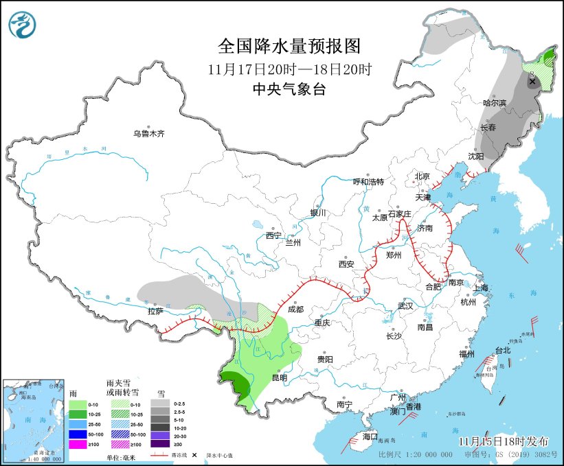 图7 全国降水量预报图(11月17日20时-18日20时)