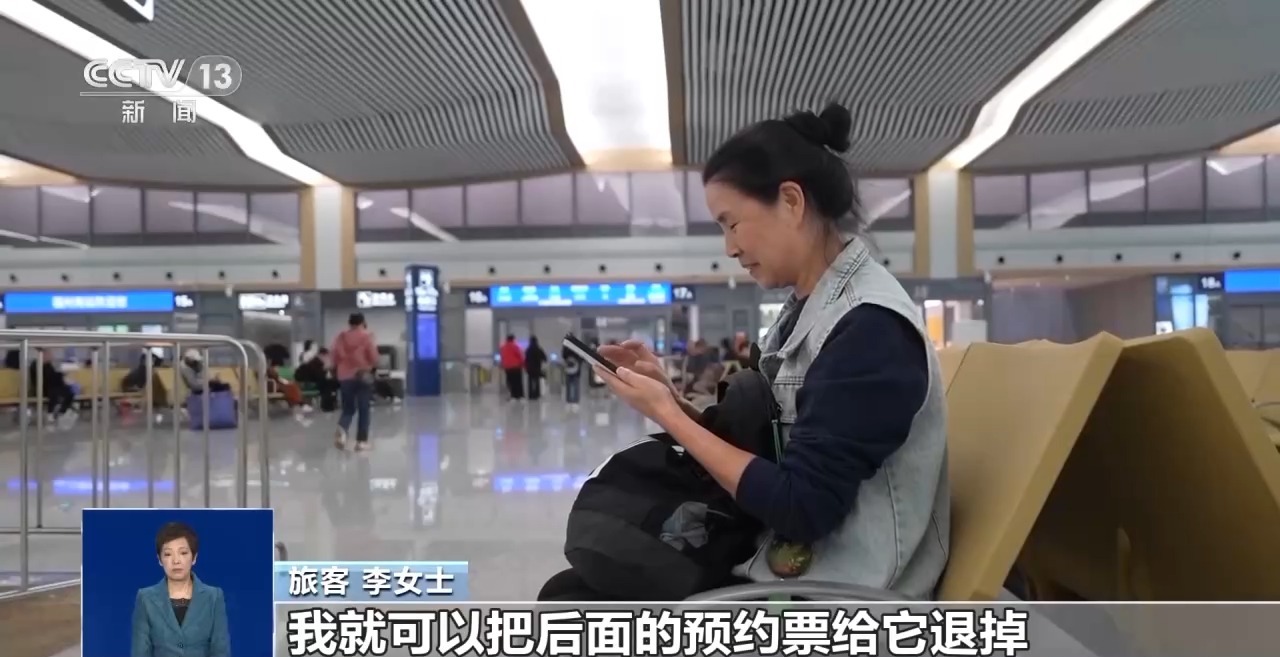旅客 李女士:我觉得还是很方便的,你看我这样子,如果出去玩,我想在这个景点多玩几天,我就可以把后面的预约票给退掉,又不收退票费,这对我们来说就比较方便,我可以另外重新预约。不要考虑到买不到票、走不了、回不了家这些顾虑。