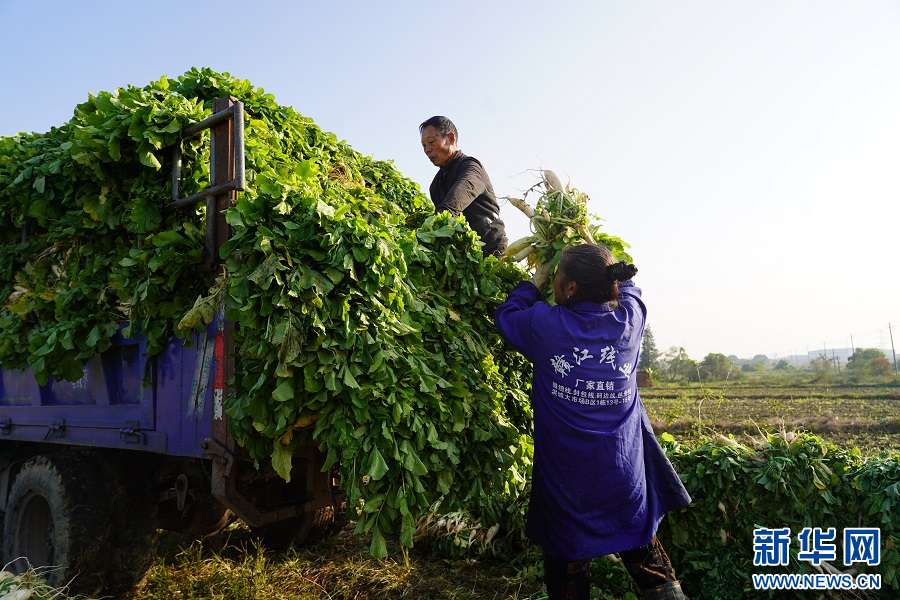 眼下正是萝卜成熟的季节,走进江西省南昌市南昌县柏岗村的田间地头,村民们正在田垄间采摘、清洗萝卜,装车发往加工厂。近年来,当地以乡村产业为抓手,积极做好“土特产”文章,打造“秀挹三江”特色品牌,通过采取“企业+农户”“基地+农户”等模式,带动农户增收致富。