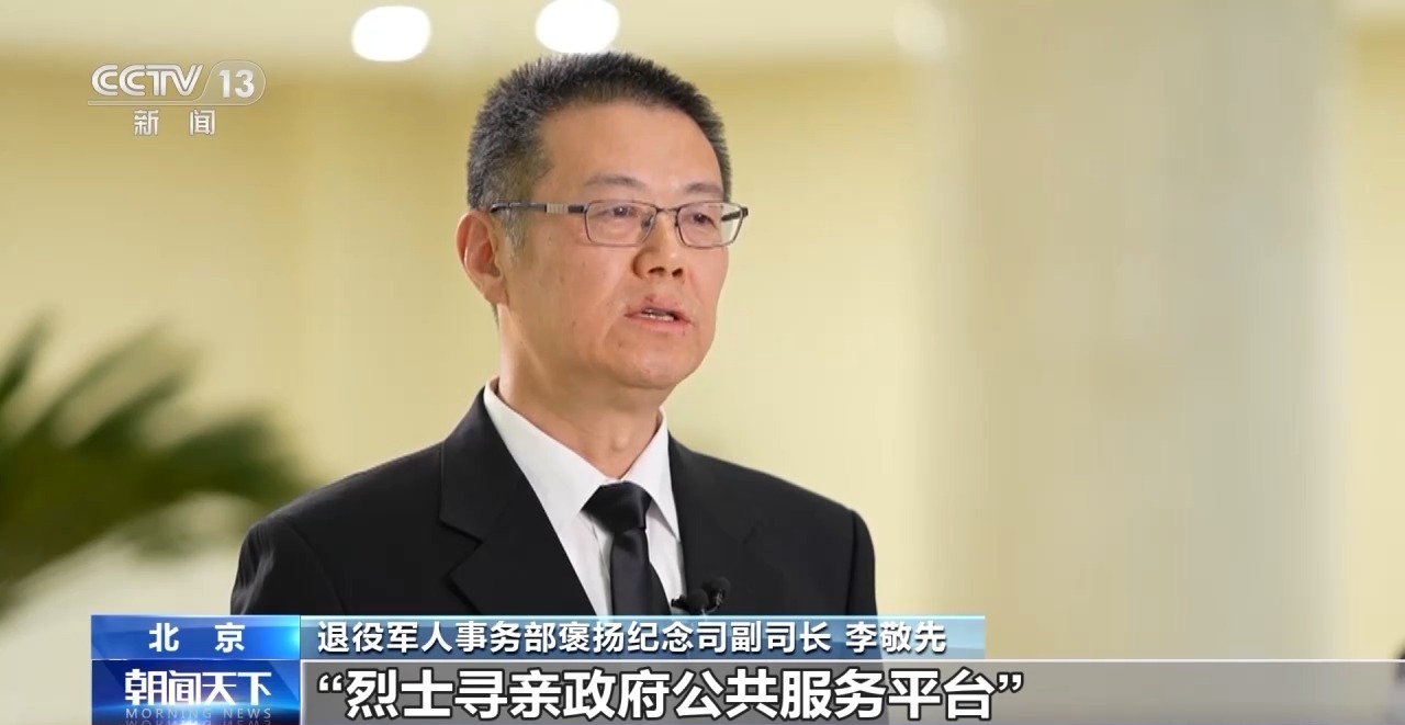 退役军人事务部褒扬纪念司副司长 李敬先:2020年4月,退役军人事务部开通“烈士寻亲政府公共服务平台”,常态化开展“烈士寻亲”活动。结合烈士遗物、军事战史以及志愿军烈士遗骸挖掘信息等,积极稳步推进烈士身份确认以及寻亲等相关工作,预计将为更多的烈士确认身份、找到亲人。