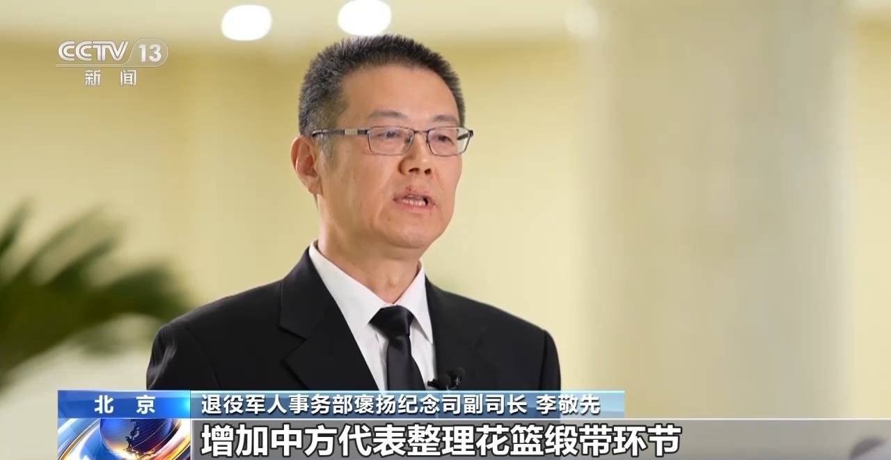 退役军人事务部褒扬纪念司副司长 李敬先:在装殓仪式上,增加中方代表整理花篮缎带环节,安葬仪式礼兵任务改由解放军仪仗司礼大队礼兵承担。在韩志愿军烈士遗骸归国安葬活动期间,退役军人事务部将动员全系统,在全国范围内开展包括走访慰问抗美援朝烈士家属和老战士代表、祭扫抗美援朝烈士纪念设施、向烈士墓敬献鲜花等系列褒扬纪念活动。