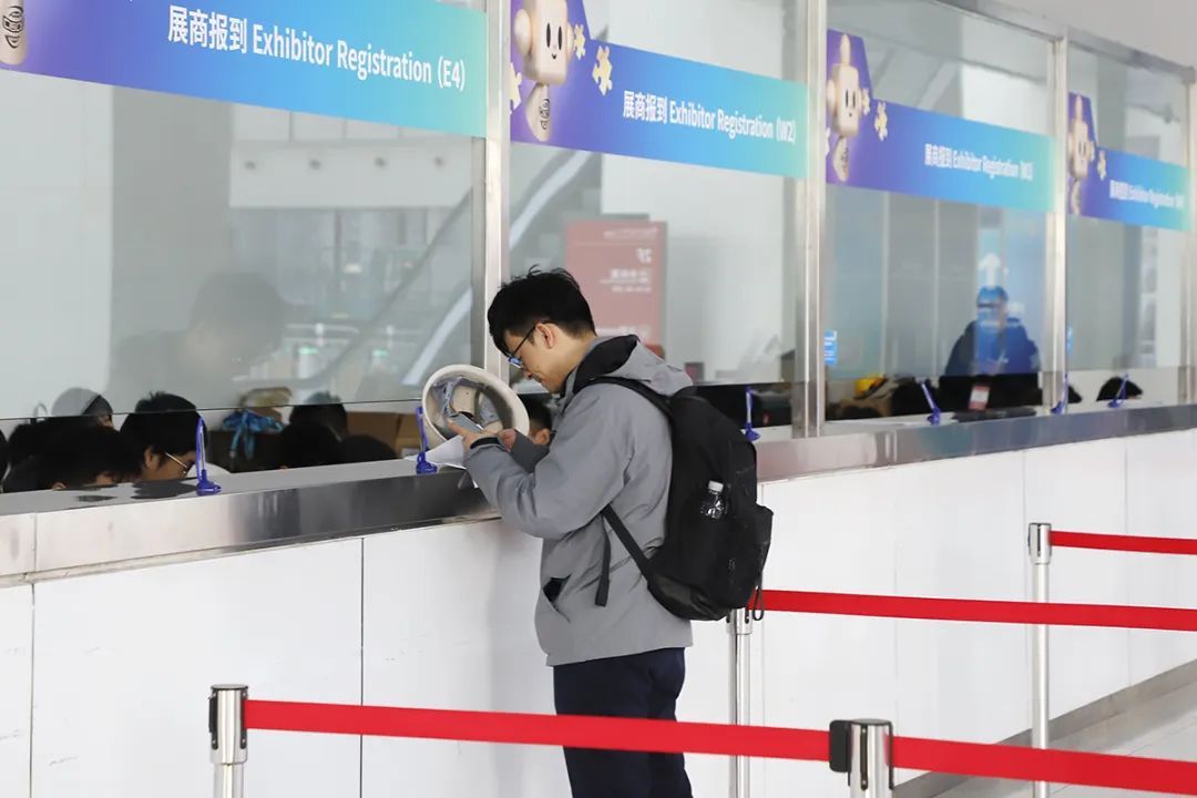 首届链博会展商报到处。