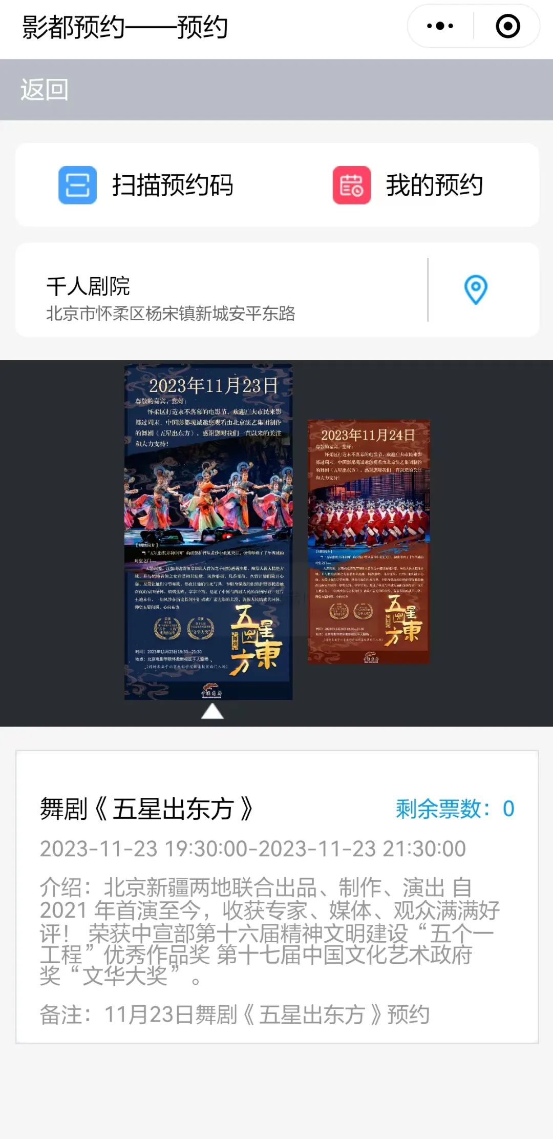 两场演出均已预约完成