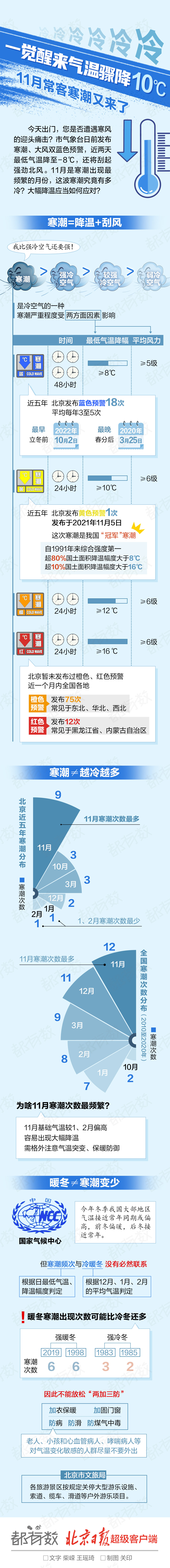 寒潮、大风双蓝色预警,