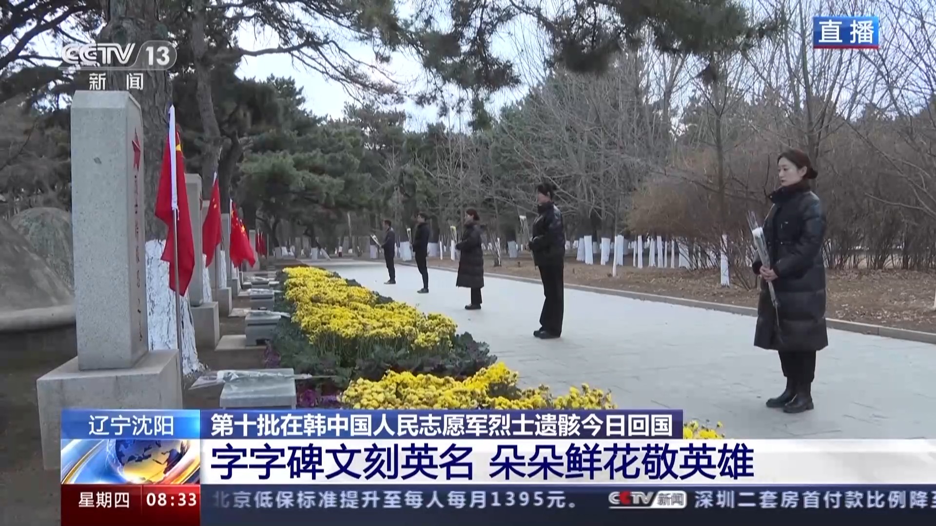 总台记者 杨雪:沈阳抗美援朝烈士陵园落成于1951年8月,经过多次修缮、扩建,目前占地面积已经达到了20万平方米。陵园安葬的志愿军烈士包括两部分,第一部分在陵园地面上的墓地当中安葬着123位中国人民志愿军烈士的遗体,这些烈士遗体大多是1951年到1955年期间从朝鲜战场上运送到沈阳的,这其中包括许多著名的战斗英雄。