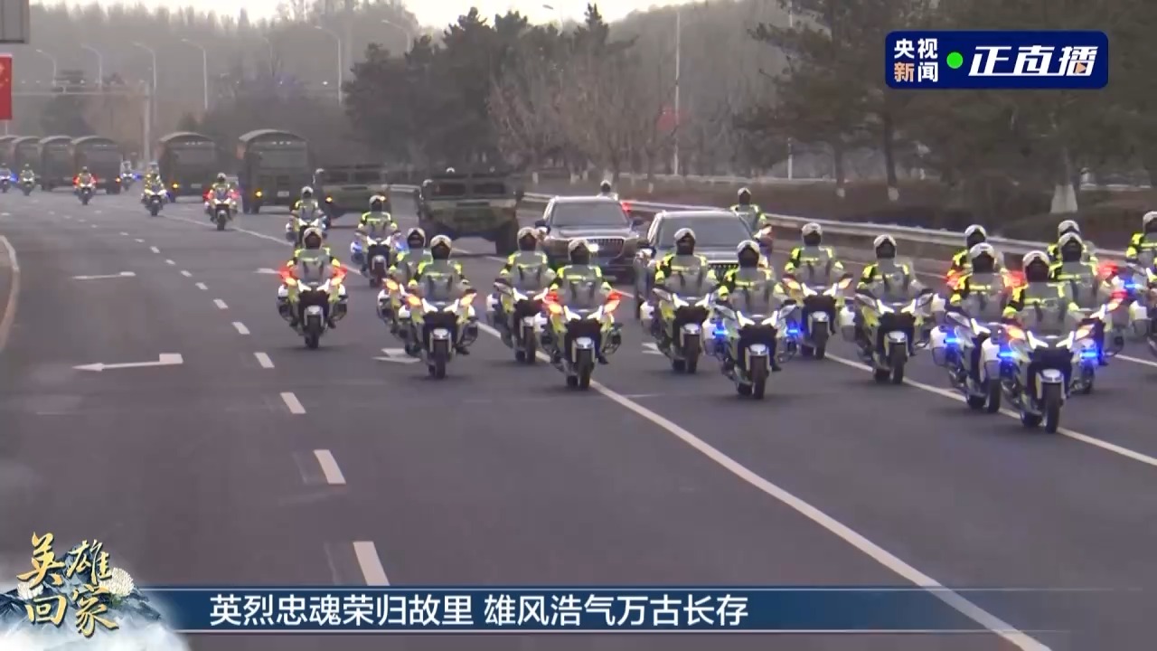 今天(11月23日)中午,由退役军人事务部牵头组织的志愿军烈士遗骸迎回仪式在沈阳桃仙国际机场举行。来自志愿军烈士亲属、相关部门、部队官兵等各界代表约1000人参加。仪式结束后,志愿军烈士遗骸棺椁被由48辆警用摩托组成的骑警车队护送前往沈阳抗美援朝烈士陵园。