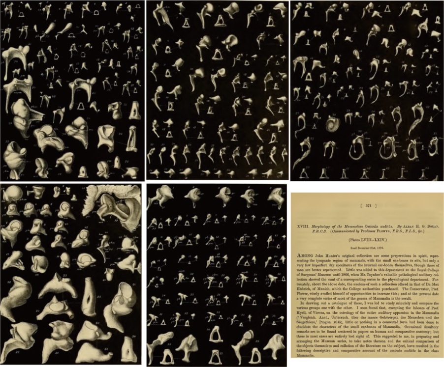 △图1:现生哺乳动物中耳听小骨多样性(Doran,1876)