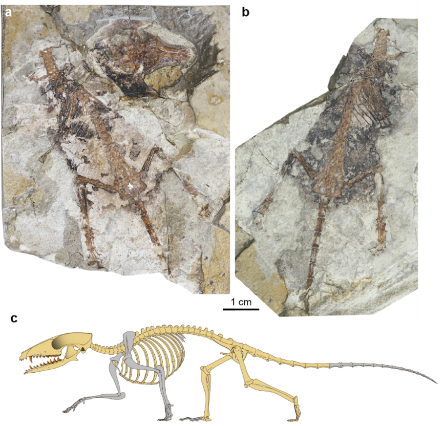△图2:梦幻小兽正型标本及复原图(骨骼复原图 陈瑜 绘)