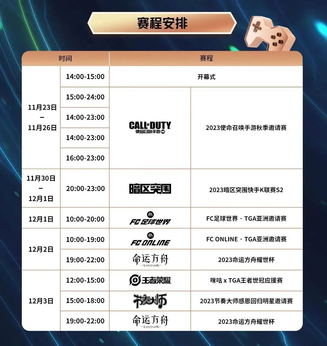 本届TGA腾讯电竞运动会冬季总决赛的七大赛事,于11月23日至12月3日悉数登场,TGA冬季总决赛邀请了来自韩国、日本、新加坡、俄罗斯、马来西亚、印度尼西亚等国家和地区的电竞选手齐聚一堂,与中国本土选手一同展开国际对抗。