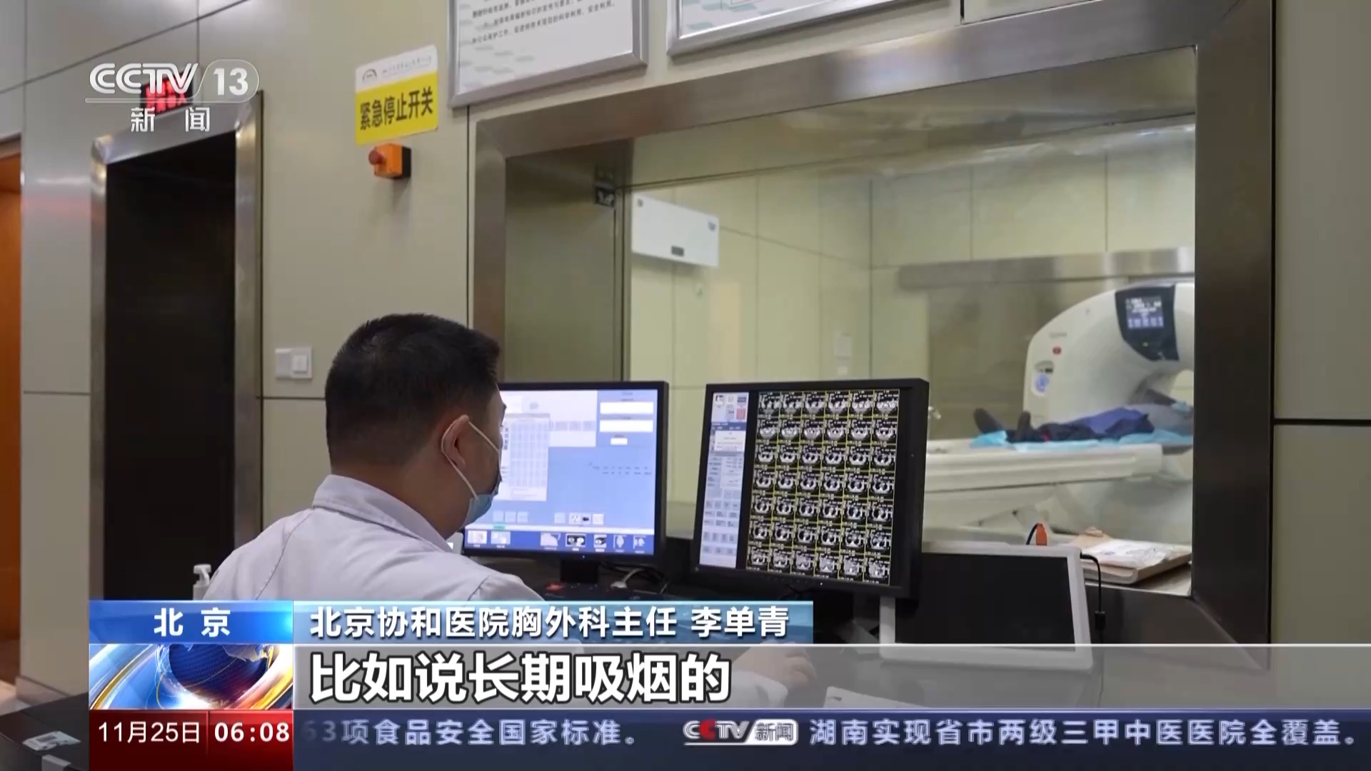 北京协和医院胸外科主任 李单青:40岁以上高危的人群,最好每年做一次胸部CT的体检,来尽早发现肺部小结节。比如说长期吸烟的,比如说从事一些比较危险的容易肺造成污染的工作,包括我们整天刷油漆装修的,这些人群我们都认为是高危人群。
