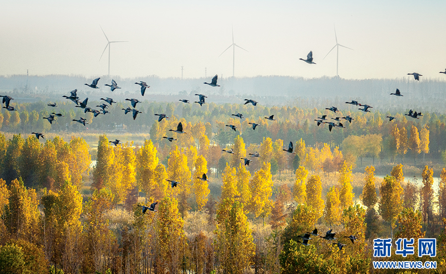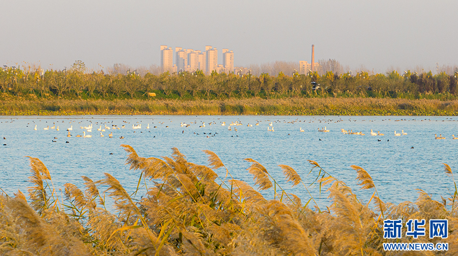 凤栖湖湿地公园良好的生态,吸引了大批候鸟。新华网发 (江河 摄)