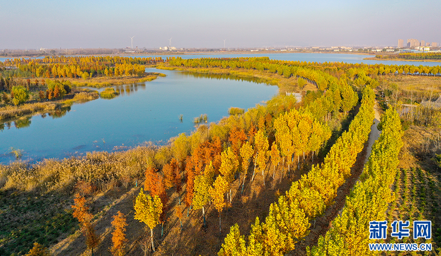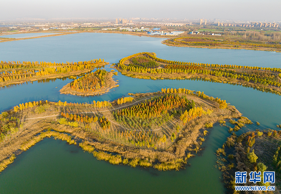 初冬时节,淮北市濉溪县凤栖湖湿地公园里,国槐、梧桐等树木傲然挺立,描绘出属于这个季节的五彩斑斓。