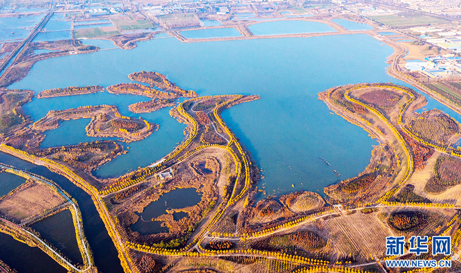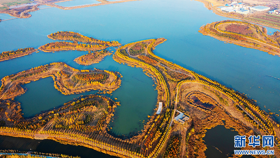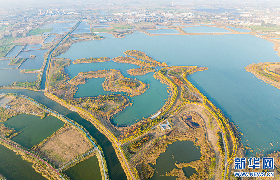 昔日采煤沉陷区,如今成为风光旖旎的凤栖湖湿地公园。新华网发 (王圆圆 摄)