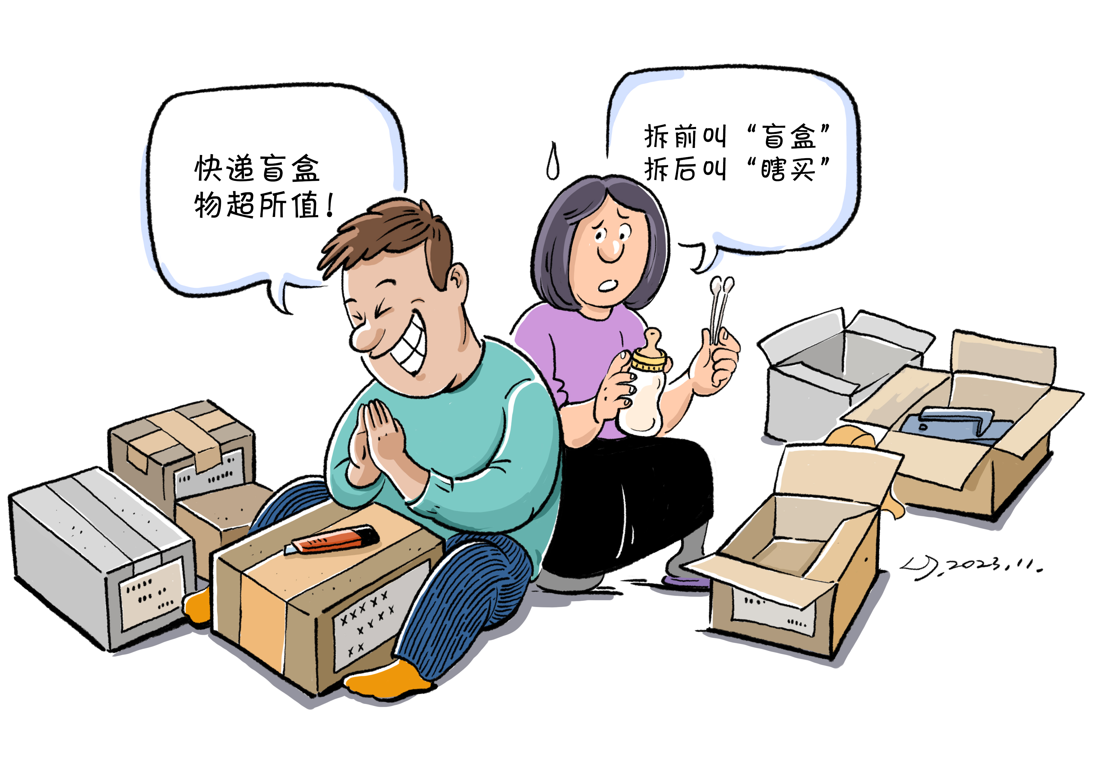 近期,有电商把内容物不明的快递滞留件放在一起,按麻袋或按斤再次销售,成为某些电商平台上所谓的“快递滞留件盲盒”,商家还宣称“稳赚不赔”。盲盒里面果真“藏宝”,商家还会拿出来卖?不过是抓住消费者“以小博大”的心理动歪脑筋罢了。消费者“捡漏”不成,难免上当。