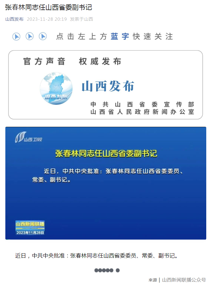近日,中共中央批准:张春林同志任山西省委委员、常委、副书记。