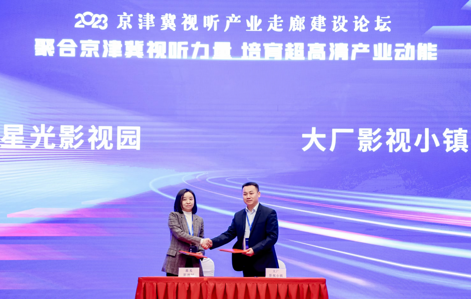 此外,中国(北京)星光视听产业基地与河北廊坊大厂影视小镇签约了京津冀视听走廊建设战略合作框架协议,协议约定将促进双方进一步挖掘在资源、内容、人才、市场、技术等方面的优势,双方优势互补、深入合作,更好推进京津冀视听产业区域协同,从而拓展合作广度和深度,促进京津冀地区视听产业的高质量发展。
