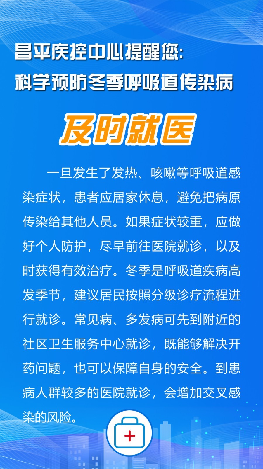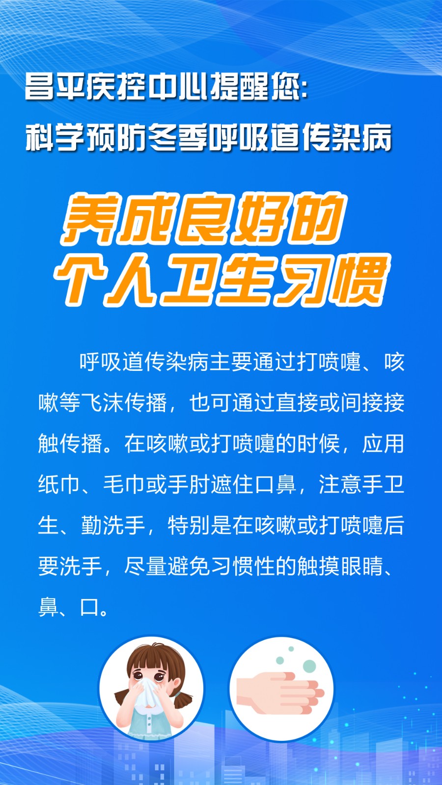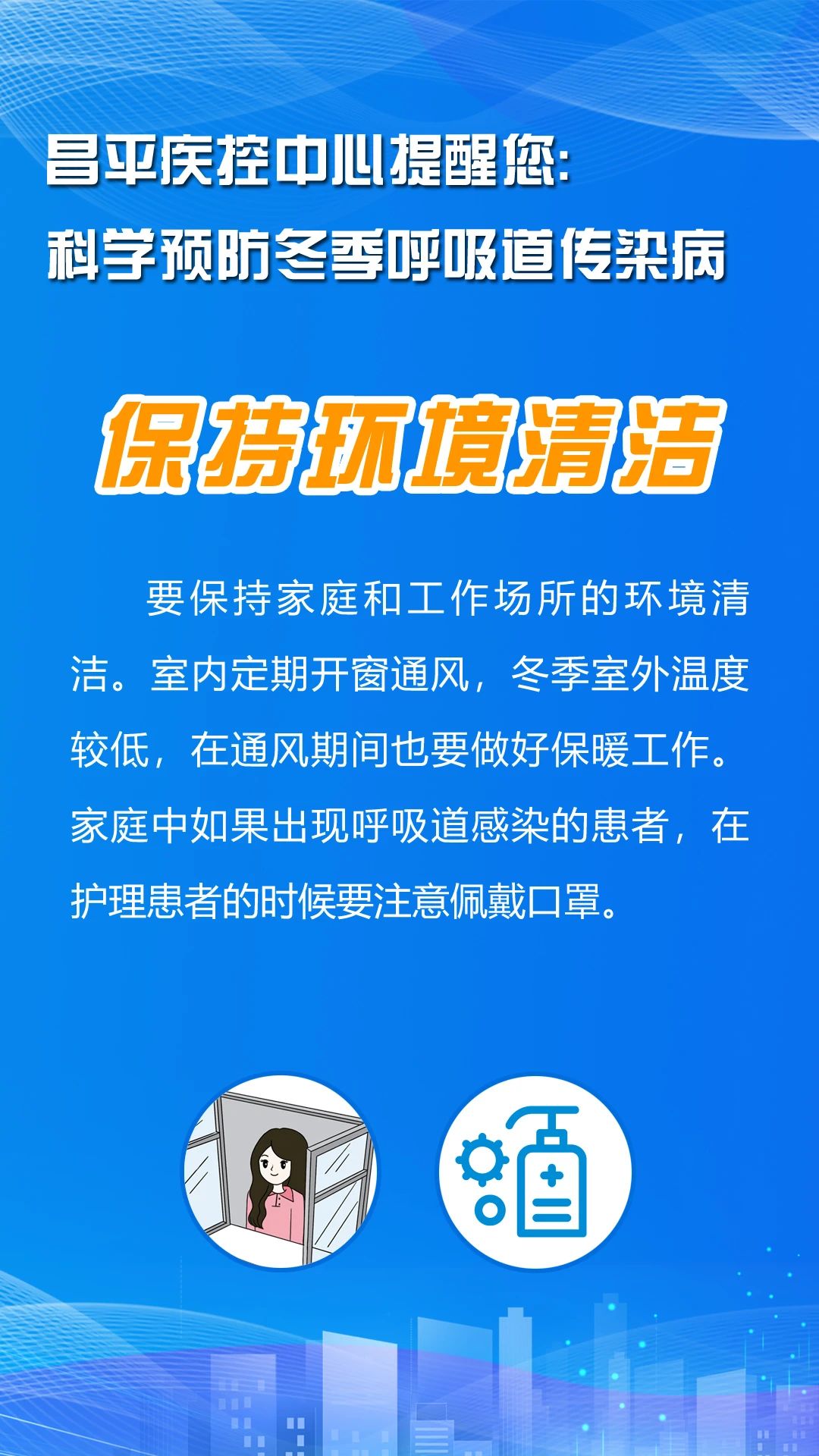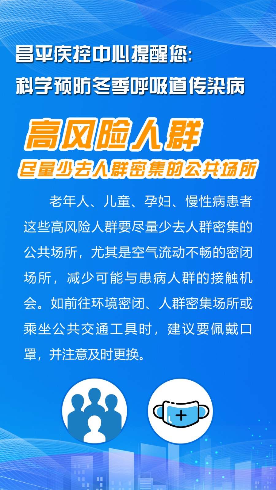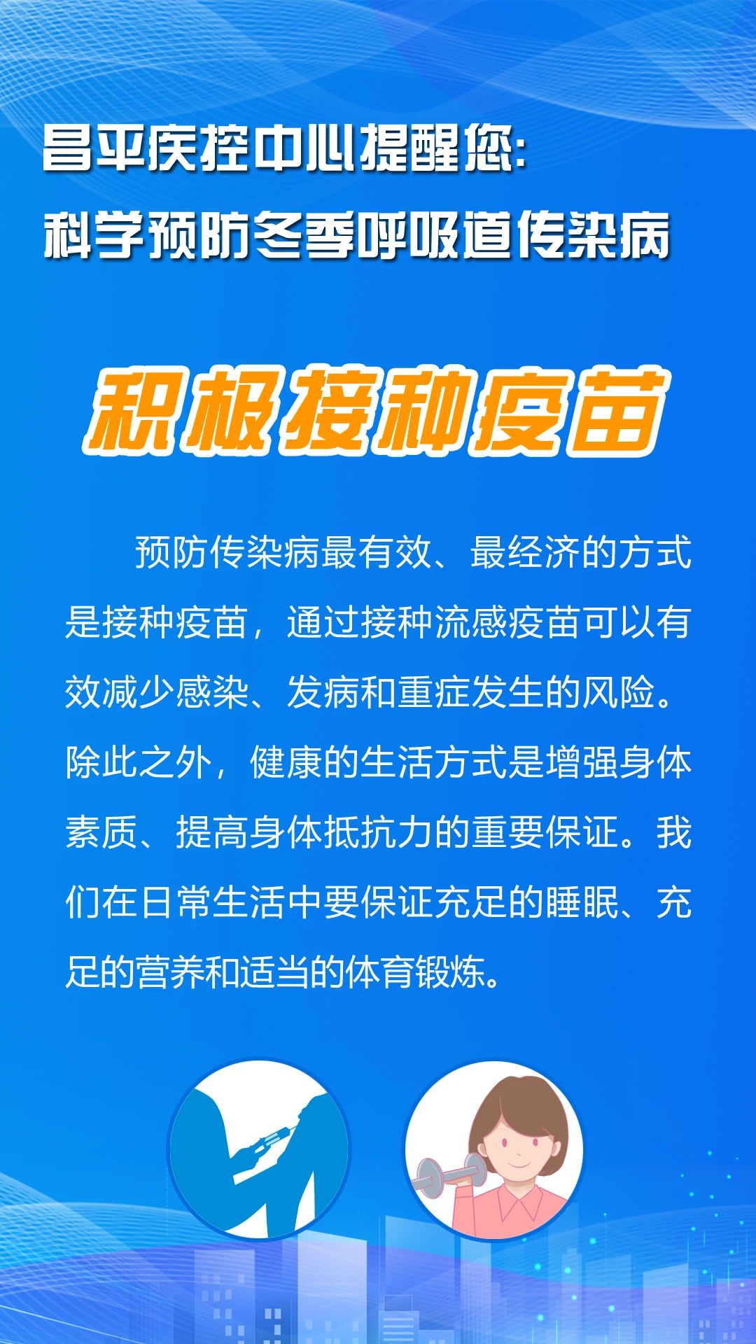 随着冬季的到来,天气日渐寒冷,气温变化较大,呼吸道黏膜抵抗力降低,是呼吸道传染病及感染性疾病的高发季节。近期,全市流感活动度上升,面临流感 、肺炎支原体 、新冠等多种呼吸道病原体叠加流行风险。为了您和家人、朋友的健康,昌平疾控中心给出五条建议,帮您降低感染呼吸道传染病的风险。